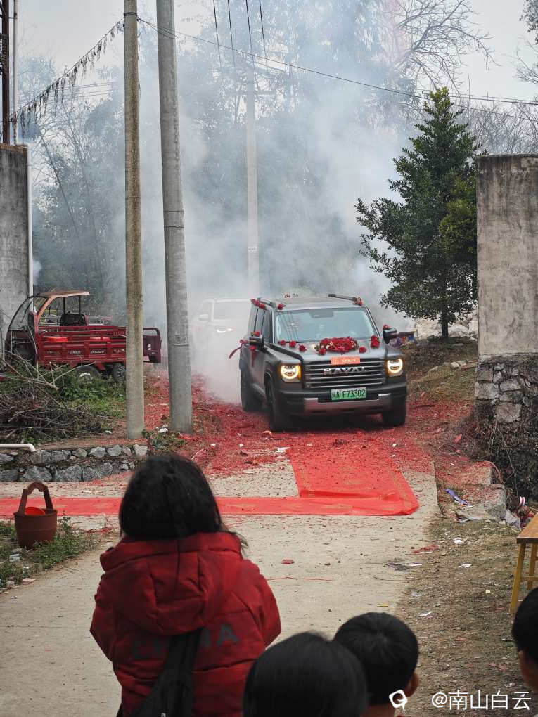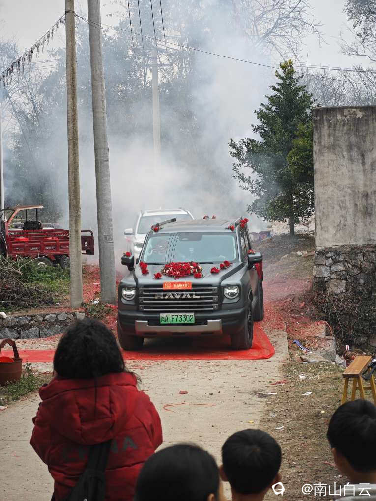 红红火火的鞭炮声中,新娘终于来了。