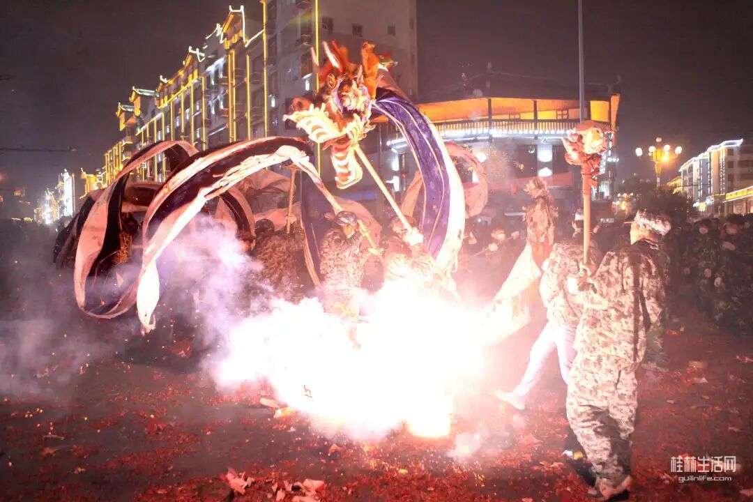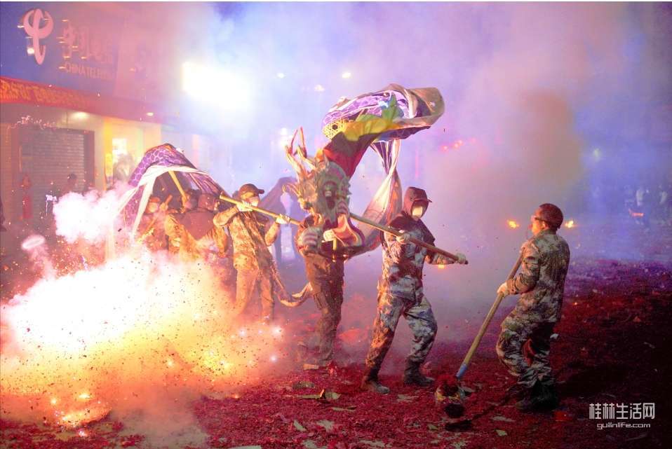 今年春节富川上灯炸龙嘉年华初十和十五各一场,“炸龙”地点是县城凤凰路与民族路交叉十字路口一带,时间定为晚上21:30-24:00