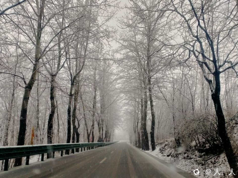 下午两点钟到山河镇,我没得雪地驾驶经验,只好老老实实原地休息了。
