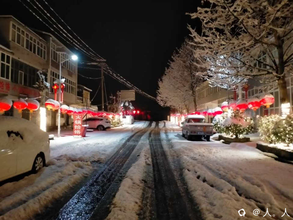 山河镇很小,幸好有一户农家愿意提供食宿。听说这里户籍只有几千人,我呆了几小时也只看到几个人。不过夜景还不错,灯笼就是半个雪球。