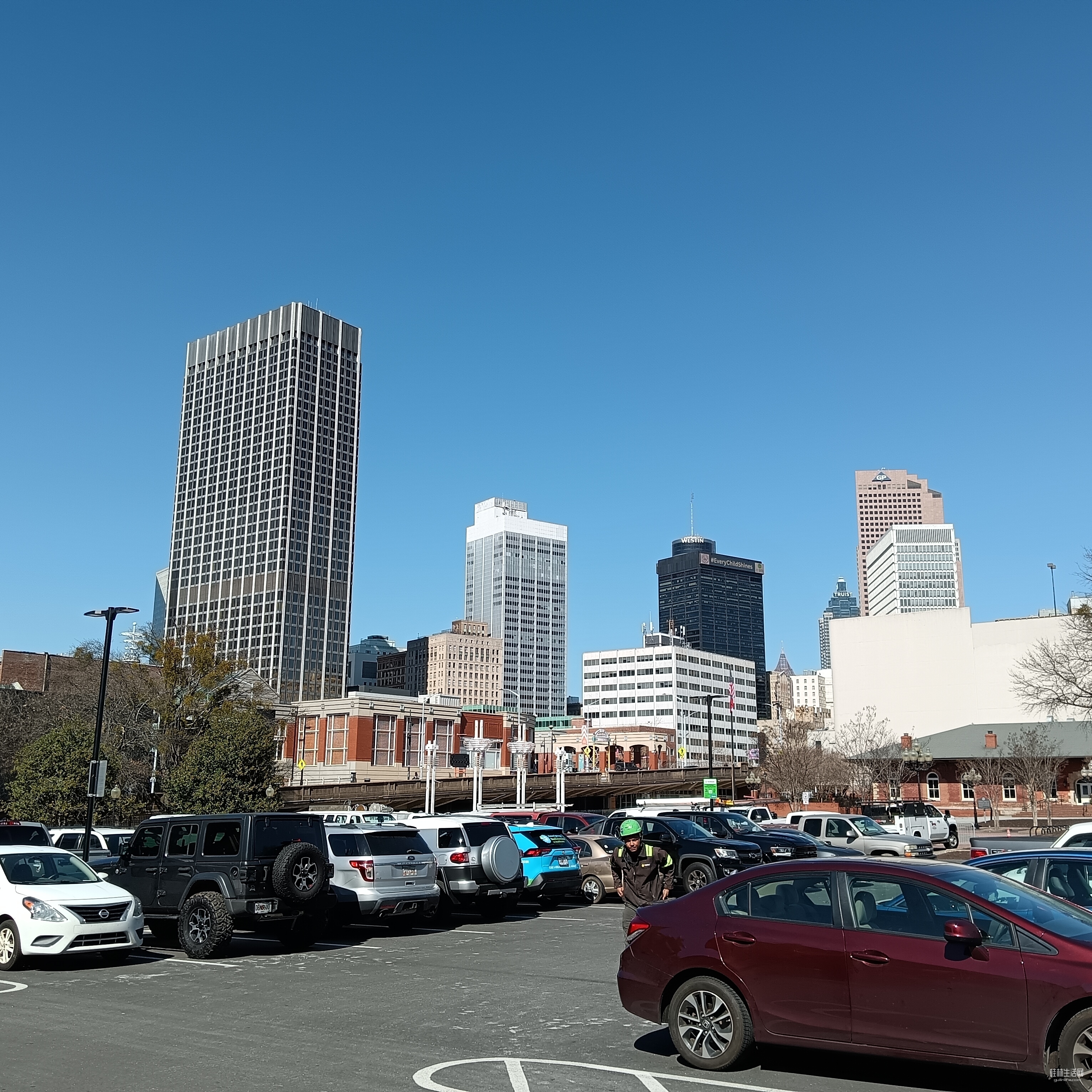 停车场周边的城市建筑。