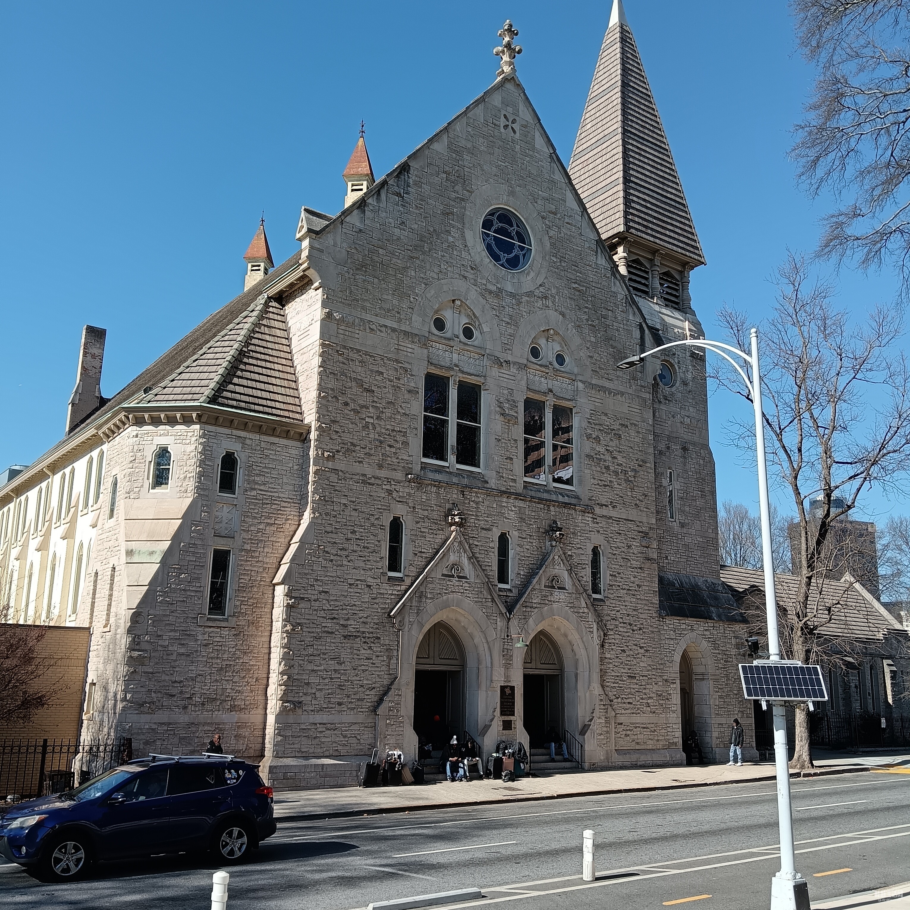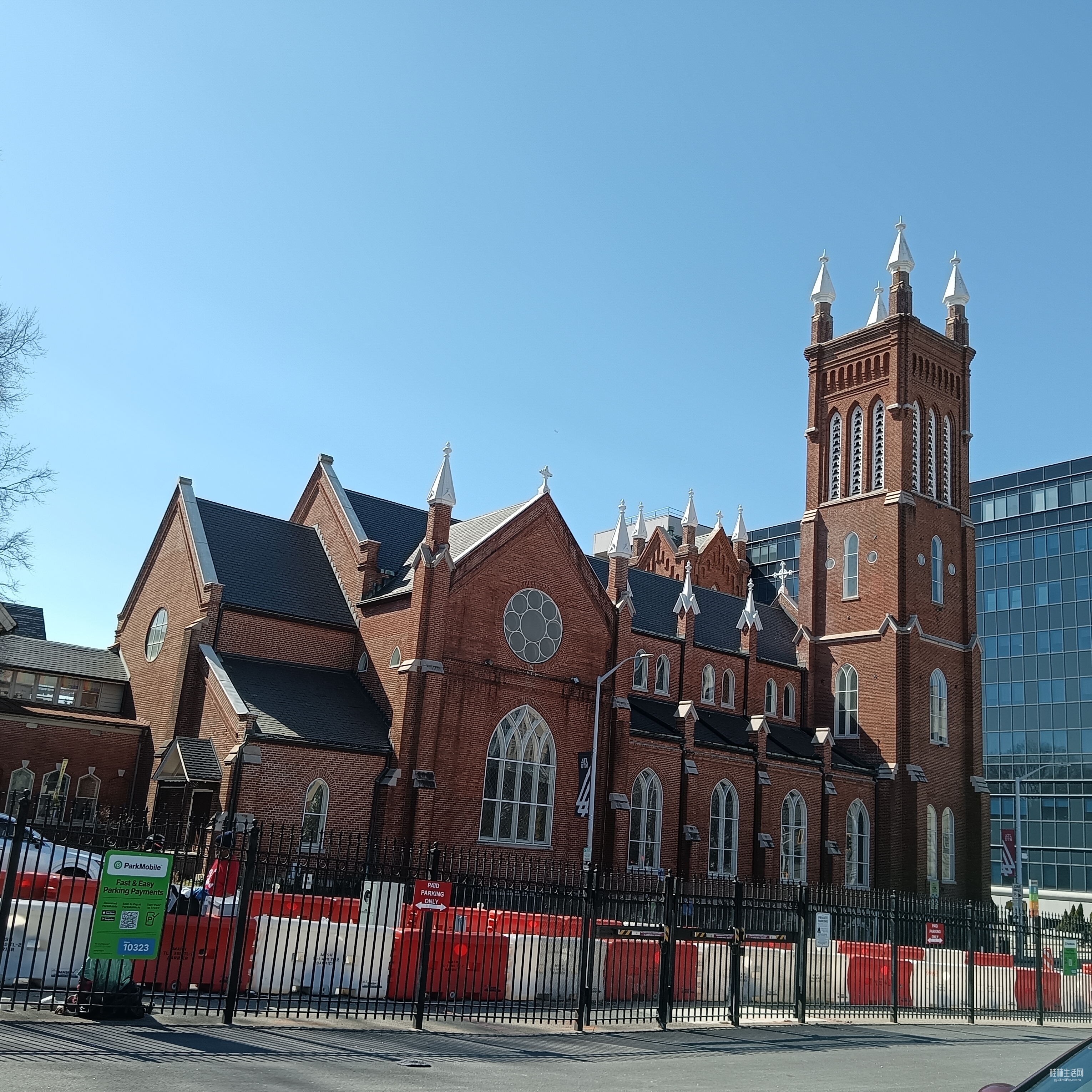 停车场边的教堂。
