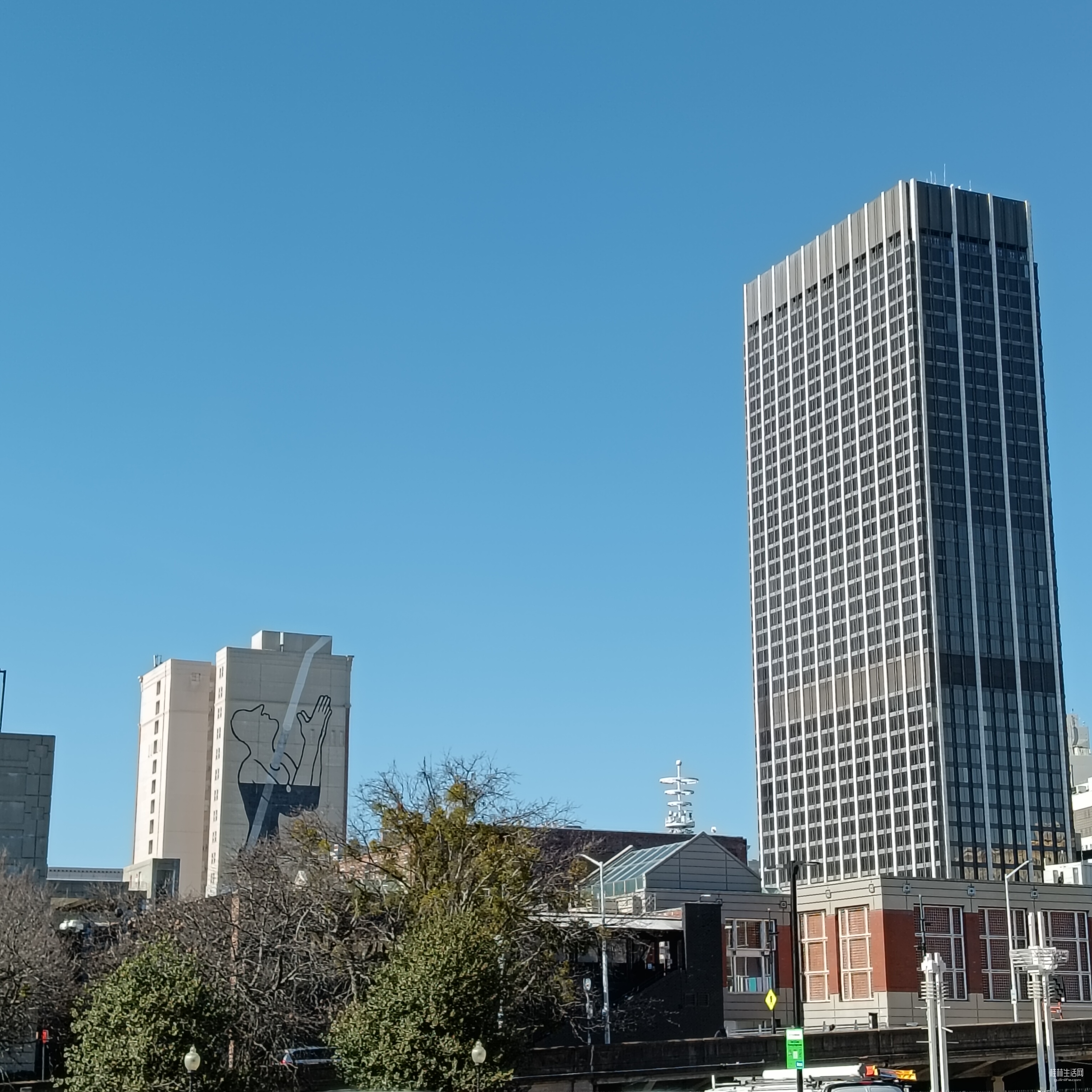我在等红绿灯准备过马路时,一眼就看到了州政府大厦。蓝天下耸立的州政府格外亮眼,引人注目。