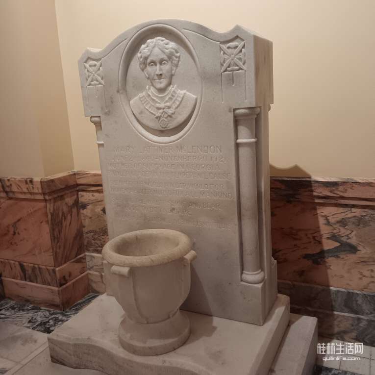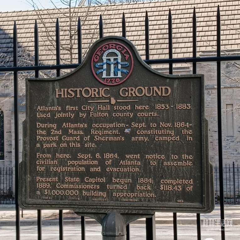 这块牌铭刻着建造佐治亚州州政府的记录。当年(捐?的及从哪方面)筹资款总计是100万美元,建造从1884~1889年,再经历?时间的完善(室内装修等),100万美刀,到完工仅剩118.43美元。本人英文不行,小孩翻译给我听,我一会就忘了。哈,有意思,立碑为证。