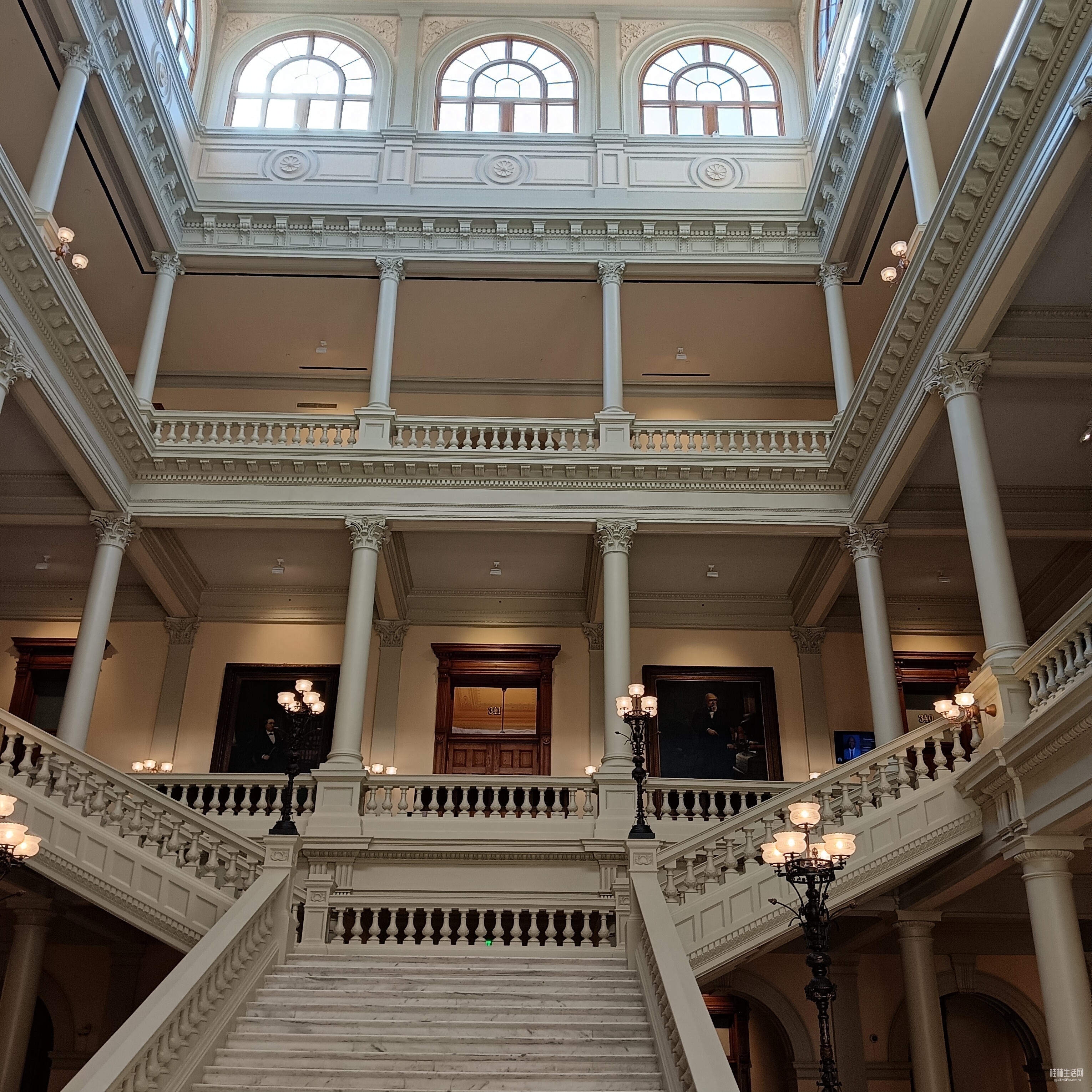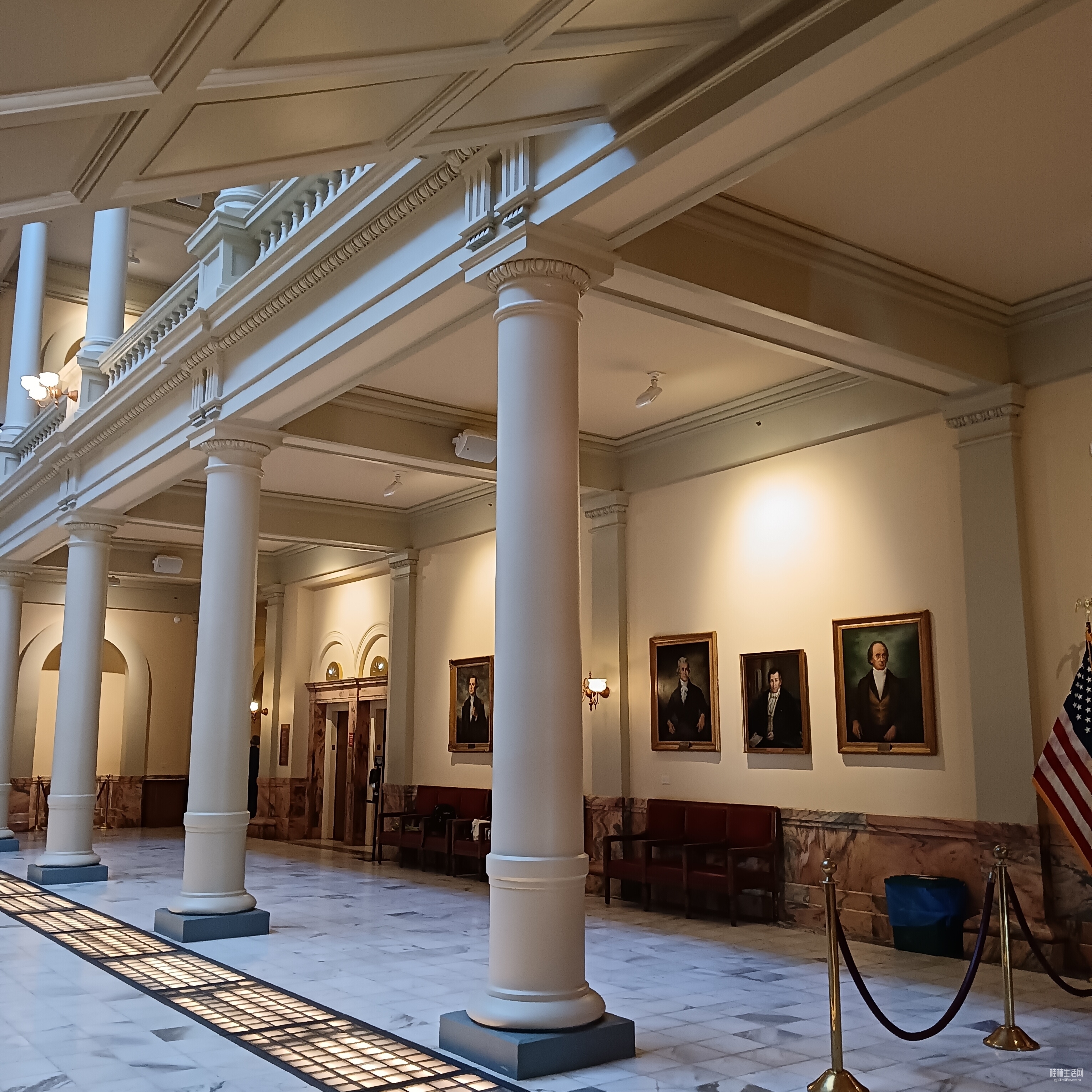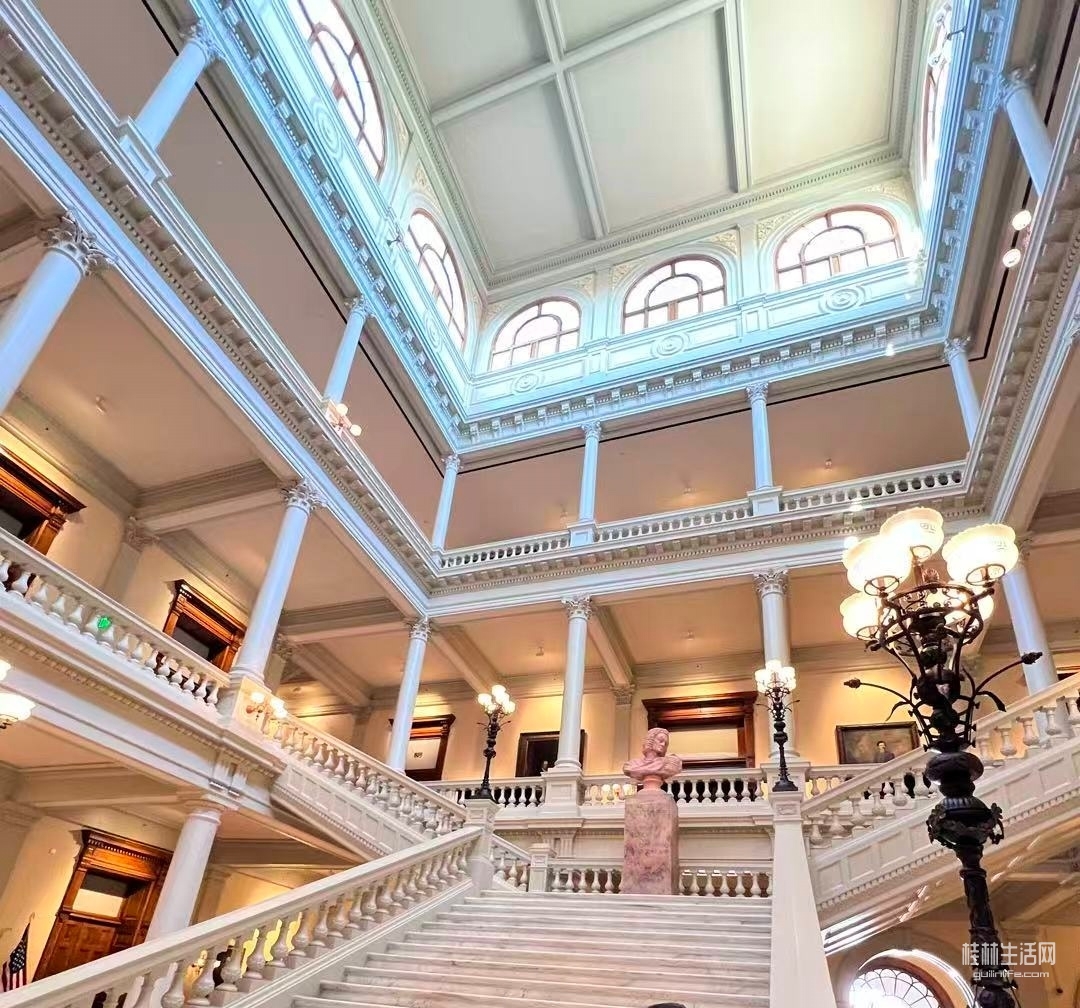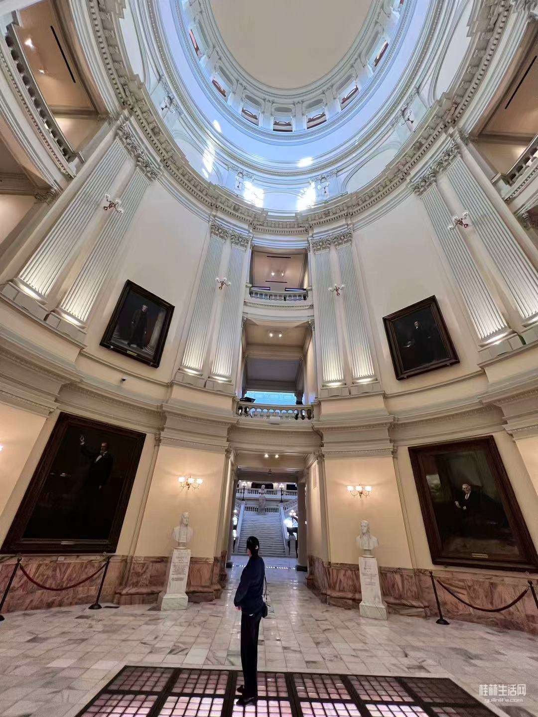 首先进入州政府大厅,大厅里里十分安静,没有几个游客,仰望大厅穹顶,真如网上所赞:此议会大厦,是新古典建筑的典范。内部装饰,和公共空间(也包含了其它雕塑作品)都很精美。期间,咱也看到有工作人员在清洁大厅和擦拭雕塑。