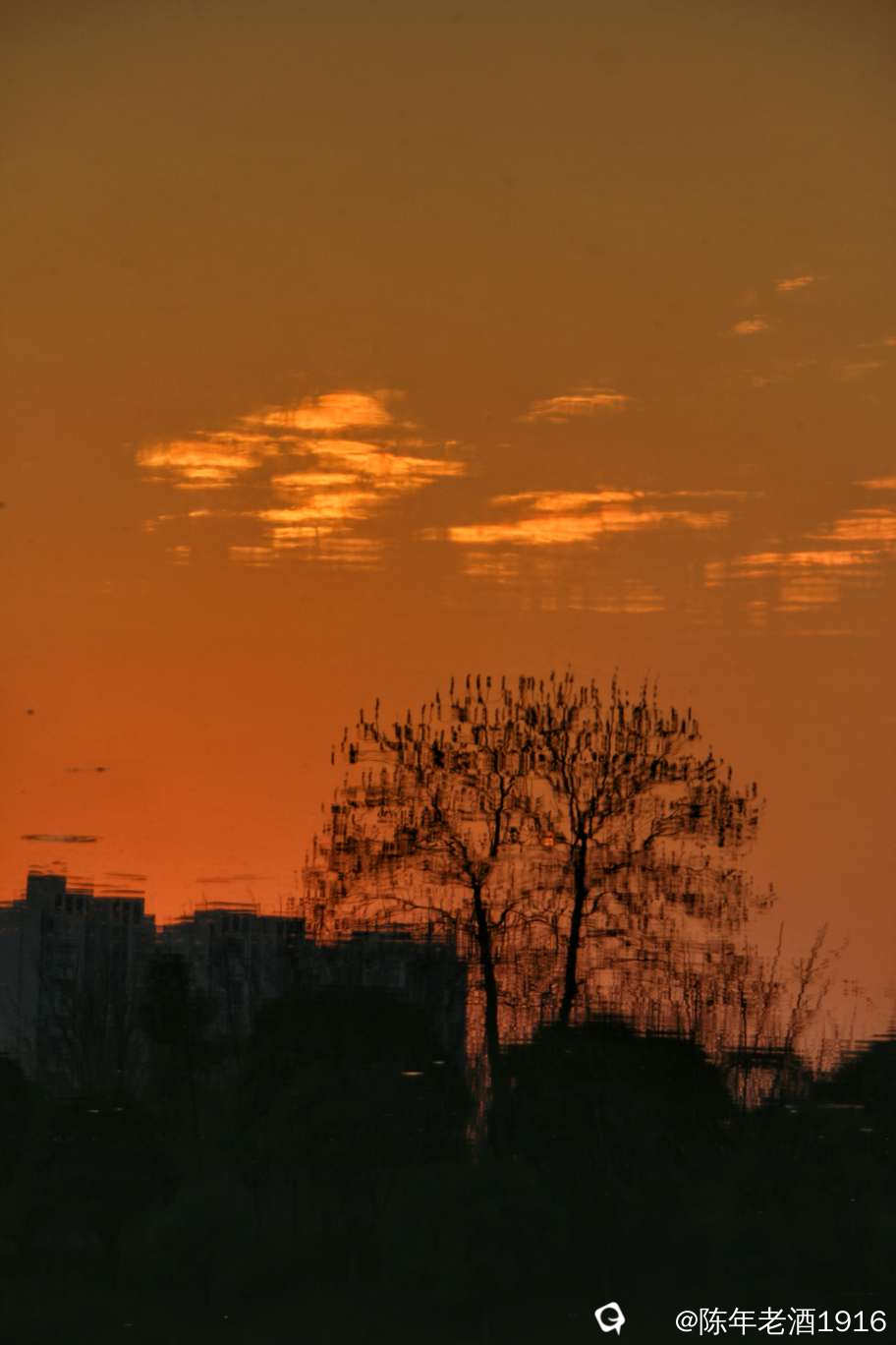 霞光倒影无限好,只是有点昏