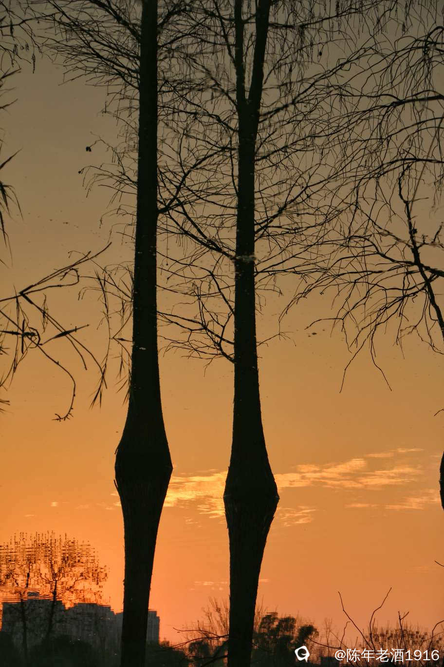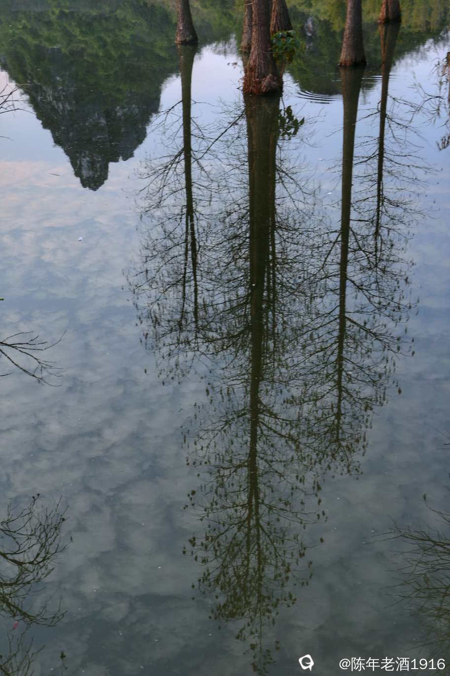 正月初四,山水公园傍晚风光随拍,倒影如镜。
