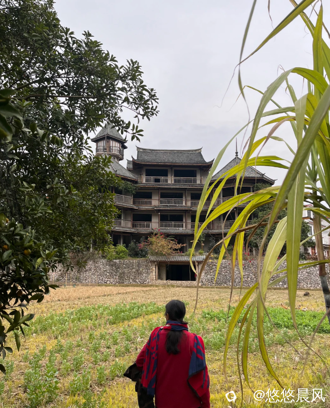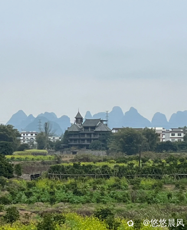 在网上看到一个老外发的动态,讲她在桂林误入了世外桃源,看到这建筑造型很特别,像是城堡的建筑框架,但是用了中式的装修风格。看她从远景拍的照片来看,也看不出是桂林哪里?