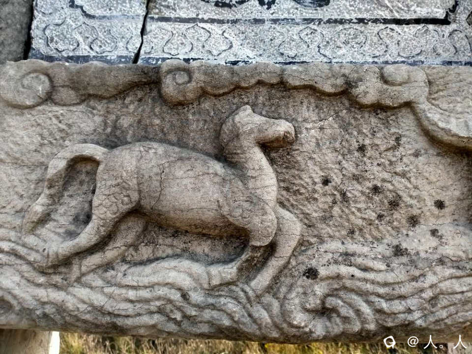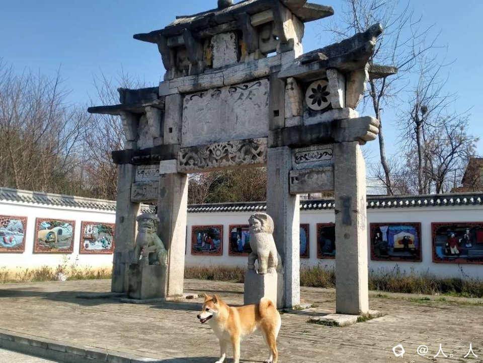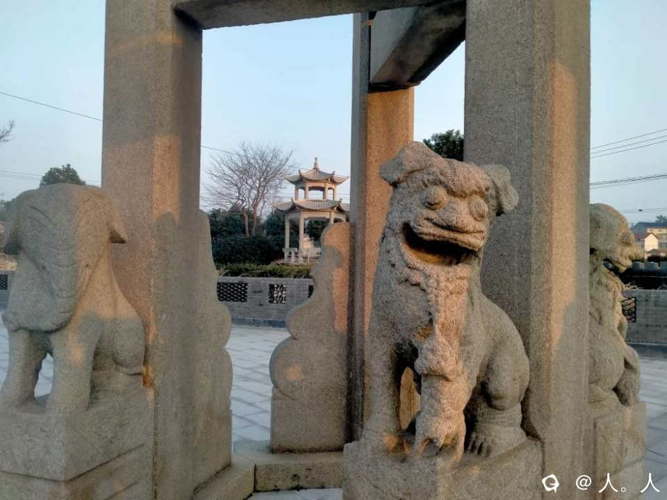 这是一个明代牌坊,立柱应该改造过,整体比较矮小,抱鼓石缺失,石狮是新的。