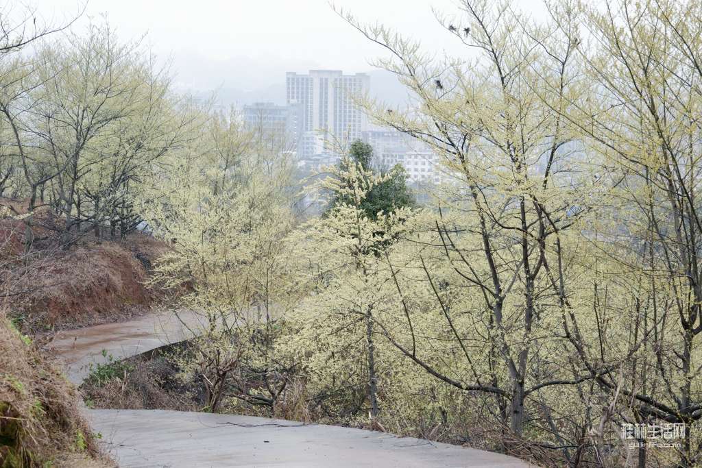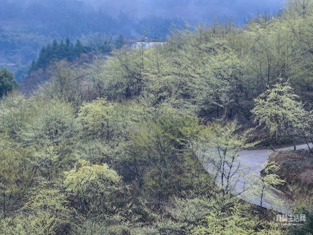 一路有水泥路直达农家乐,可停小车或中巴车。现在正值山苍子花的赏花打卡季,晴天或烟雨季都可前往。