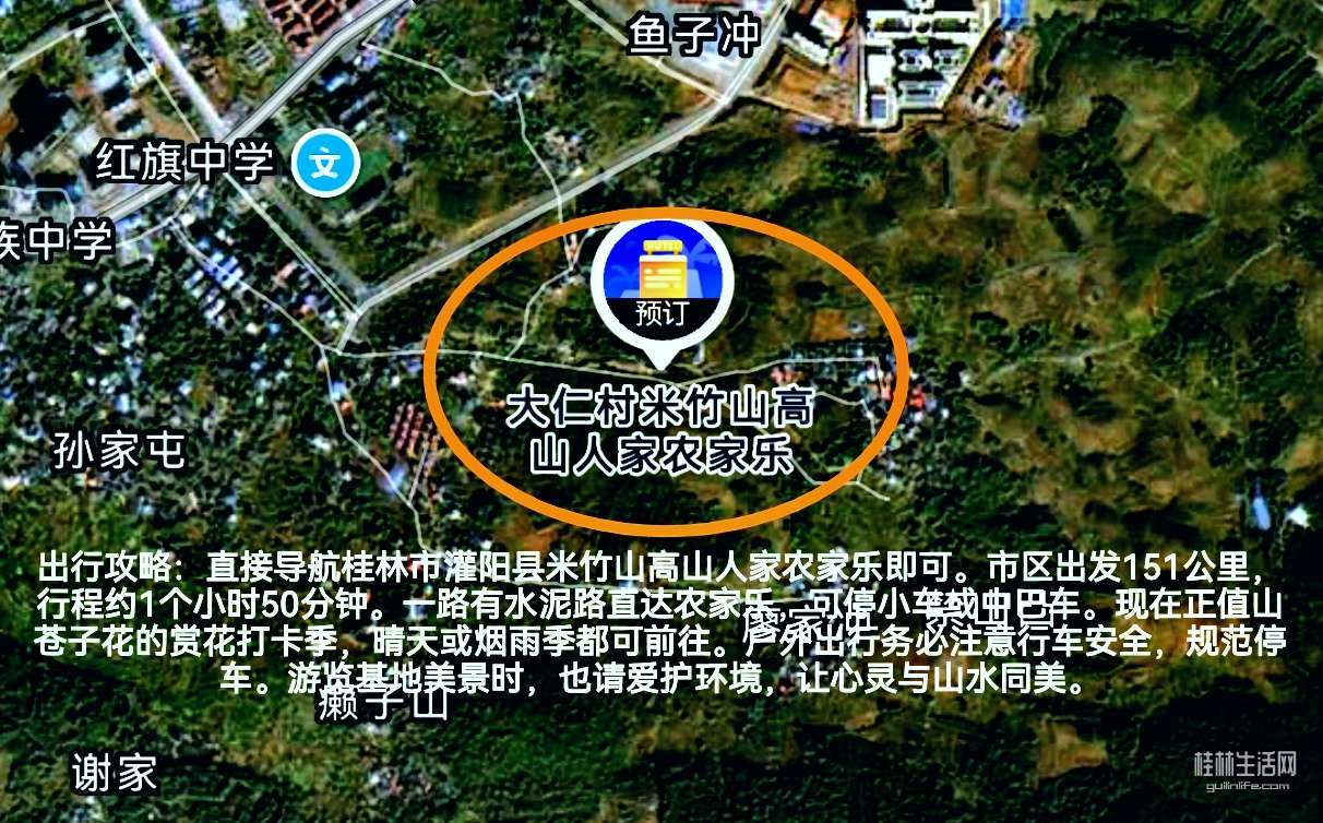 出行攻略:直接导航桂林市灌阳县米竹山高山人家农家乐即可。市区出发151公里,行程约1个小时50分钟。