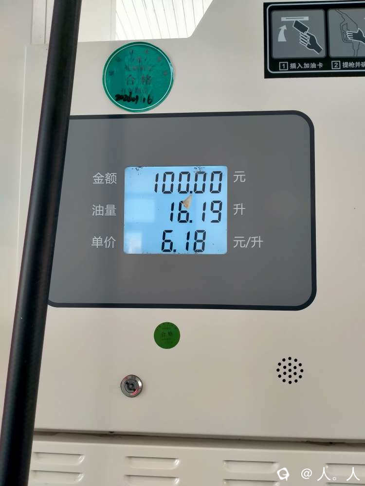 油量警报响了两次后,我到加油站加到跳枪,31升160几块钱。本来想拍个照,哪晓得加油员马上给另外一台车加油,数字清零,只好拍了一张旁边95号的。
