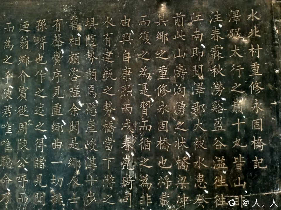 旁边的红砖墙上镶有数方永固桥的历代碑记