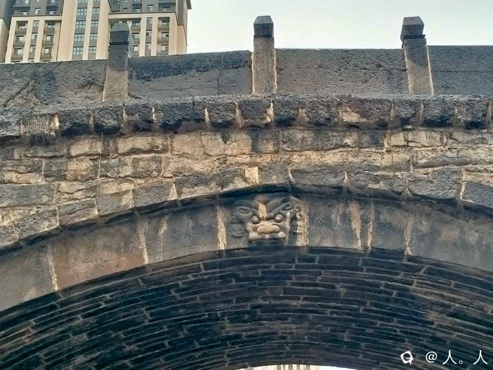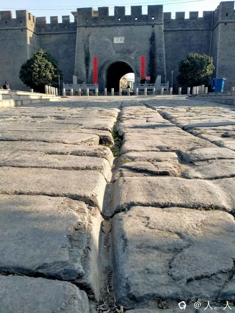 古桥正对着城门,石板路的凹槽据说是以前的车辙印。