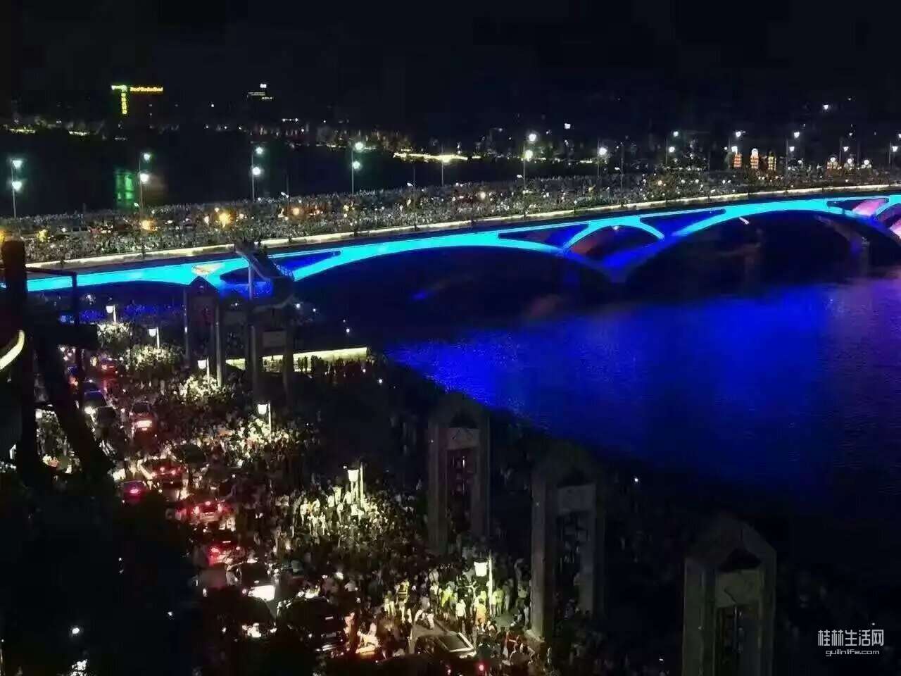 而今年的春节,同样的是万人空巷,不同的是表演换成了无人机表演,不过热闹的桂林依然存在。
