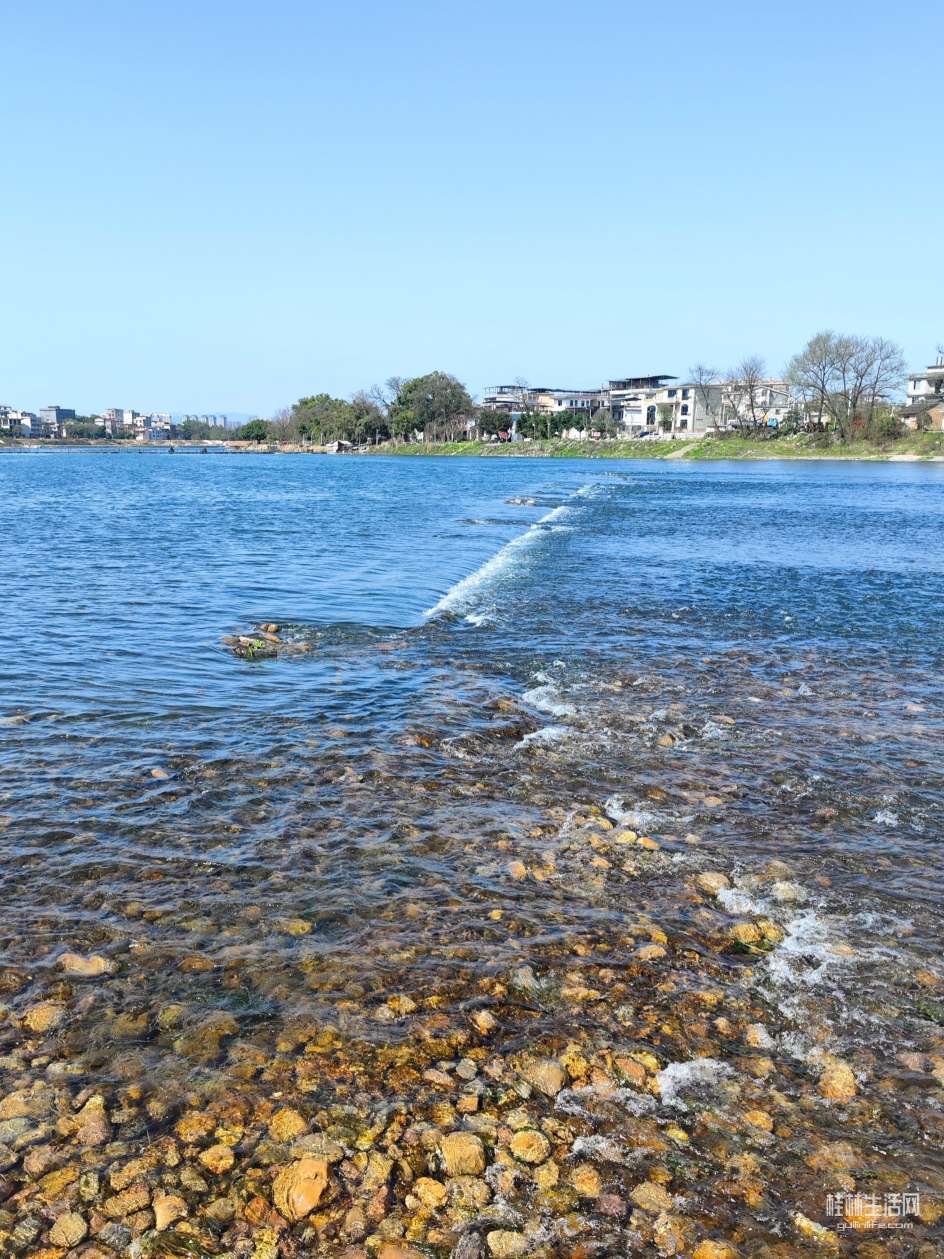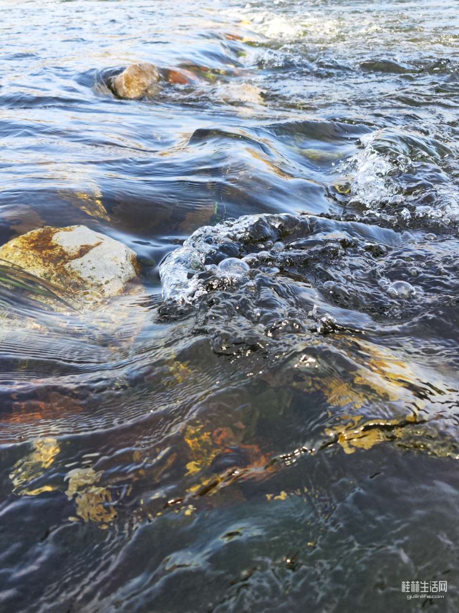 江开阔,河清冽,有石浪,能亲水。