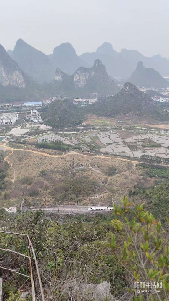这座山看起来很高啊!我一直忐忑不安:觉得可能会很难爬哦!这是一座在铁路边的高山,铁路叔叔们很友好,帮我们整理出了一条山道。一路上去,很舒服啊!