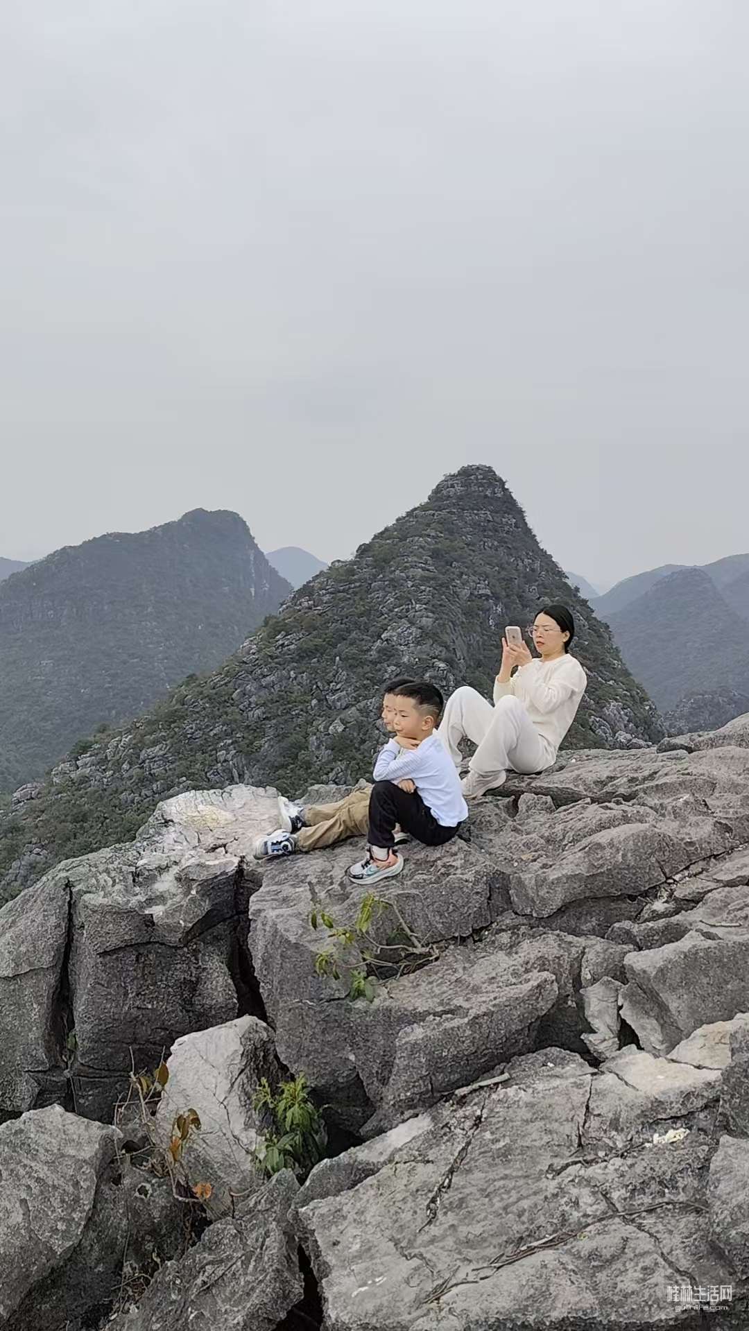 到了山顶,确有一种一览众山小的感觉。山顶蛮多人呢!有老的,有小的,大家都很友好,愉快地交流着。在山顶我往会仙、四塘方向看,千里江山图尽收眼底!哇,最美的山水,成就了此刻最好的自己!