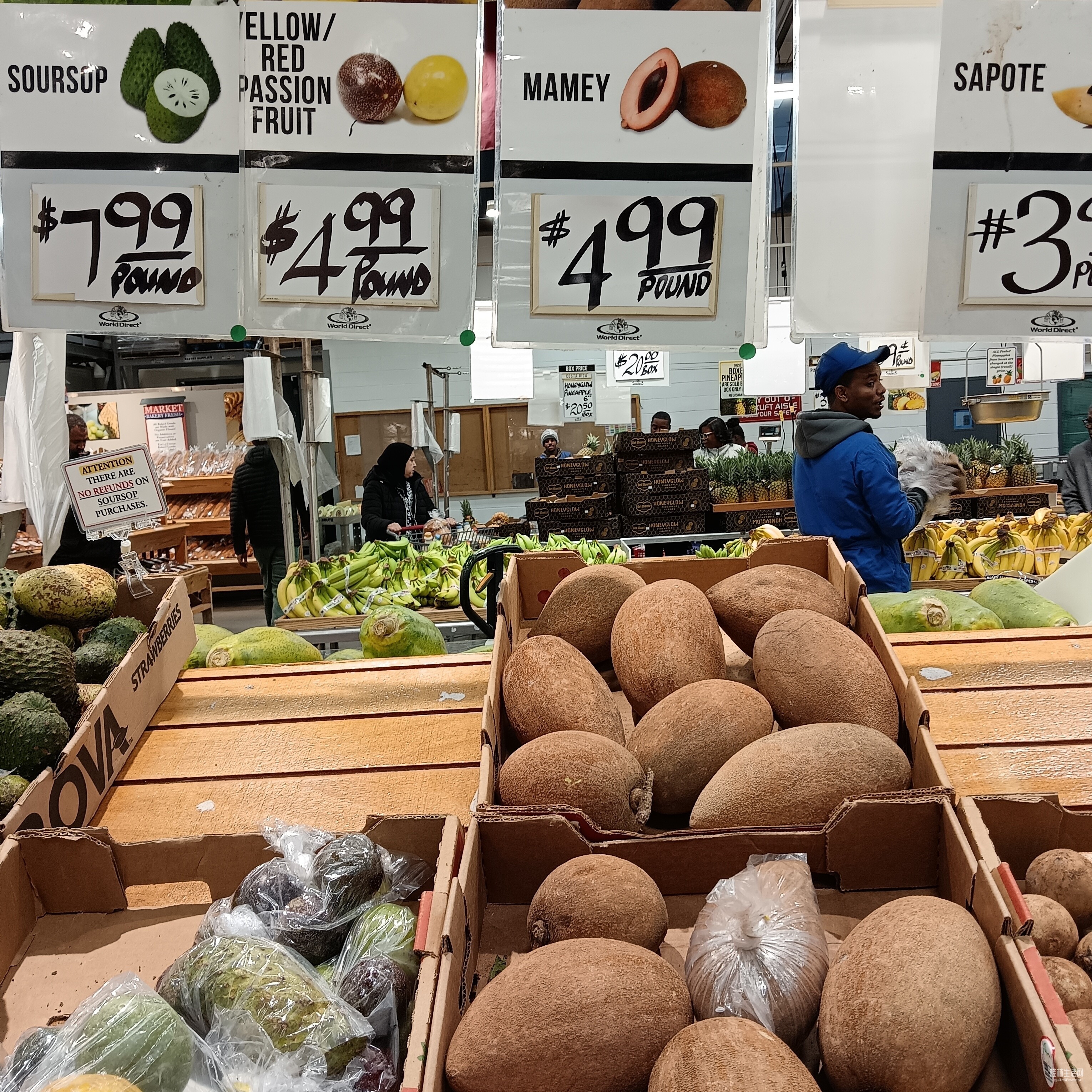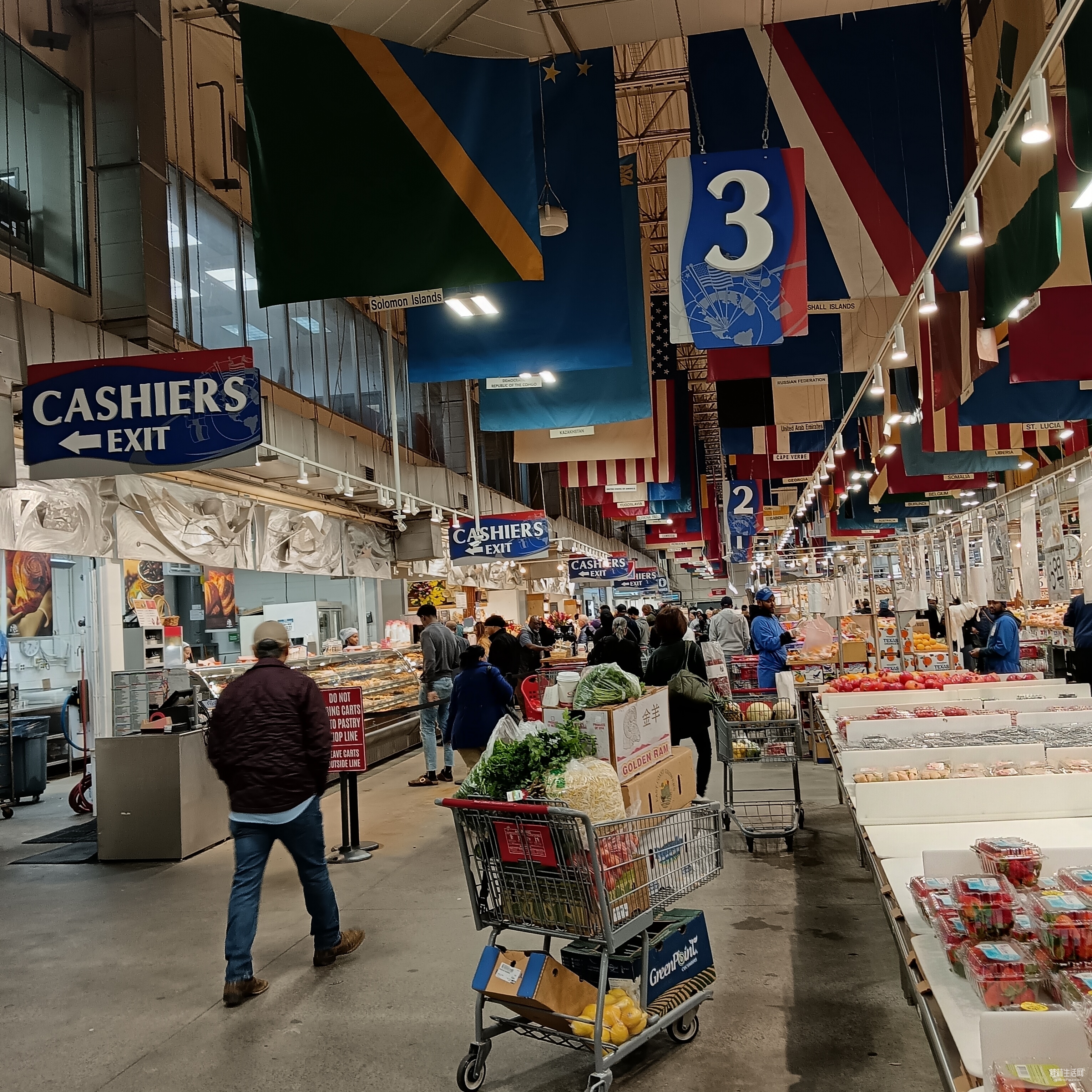 市场里各国的蔬菜,水果,食品;海鲜,酒类,等等;等等,要有尽有,在这也许都可找到,但东西价格并不便宜。我想,这里或许让赴美的移民,在此找到其想念的,他们家乡的味道吧,以此慰籍乡愁。