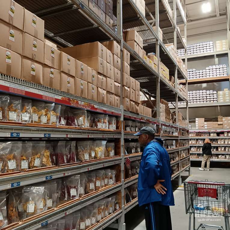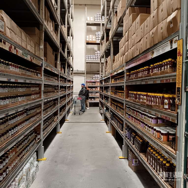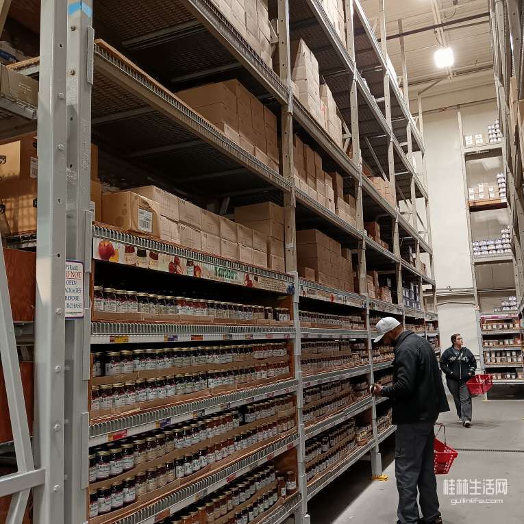 高架货柜一排排。有各国调料产品的,干果的,酒类的,等等。这的工作人员来回巡视,禁止顾客拍照。