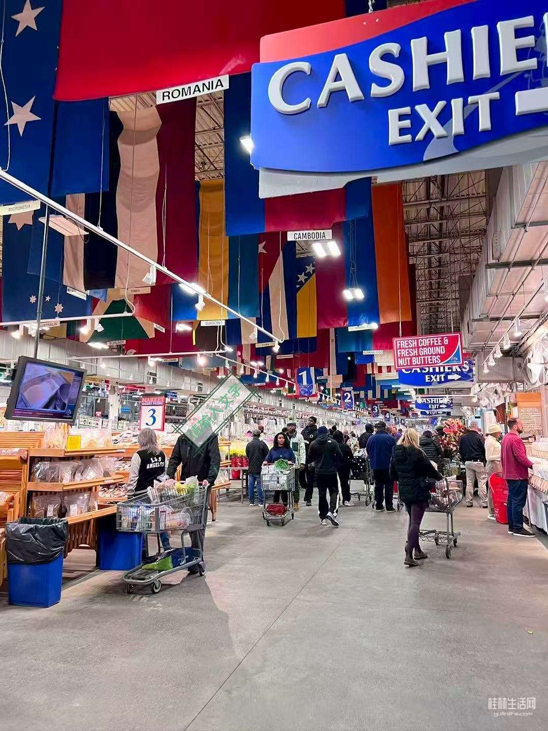 出口的收银柜台有几十个,结账买单的顾客好多。最令人感到诧异的是,此农夫市场结账不用信用卡,需用现金支付,或用借记卡。(储蓄卡)。