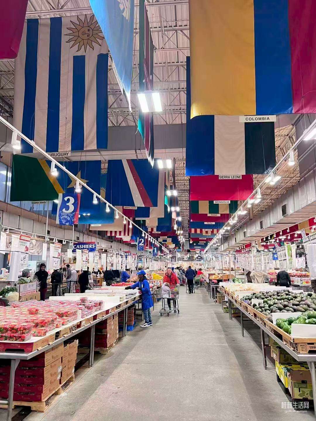 蔬菜区的上面,悬挂着万国旗。各个国家的蔬菜在此都有卖。