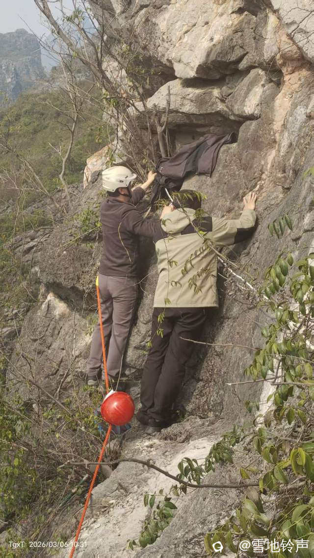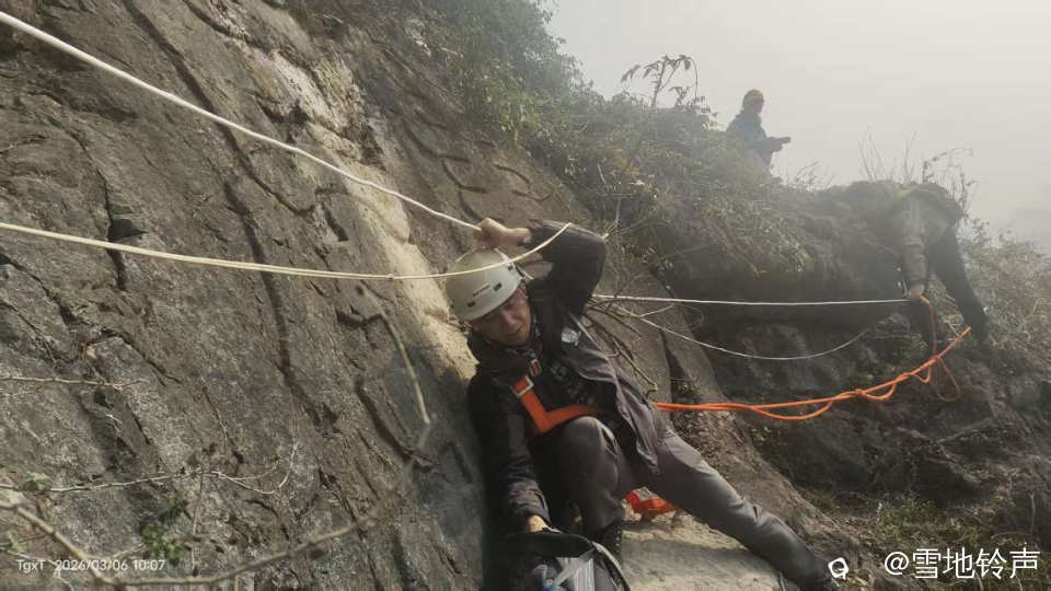 由于山势地形复杂,工作人员携带专业工具,几经努力方才抵达石刻所在位置。