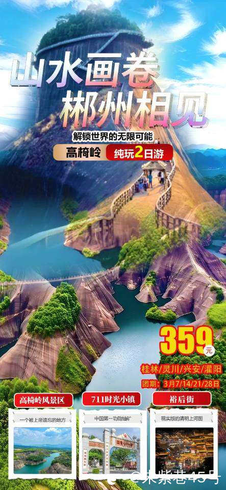 【汽车高椅岭2天】3月14/21/28日出发,湖南郴州,登绝美丹霞高椅岭,711时光小镇、裕后街汽车纯玩2日游359元/人