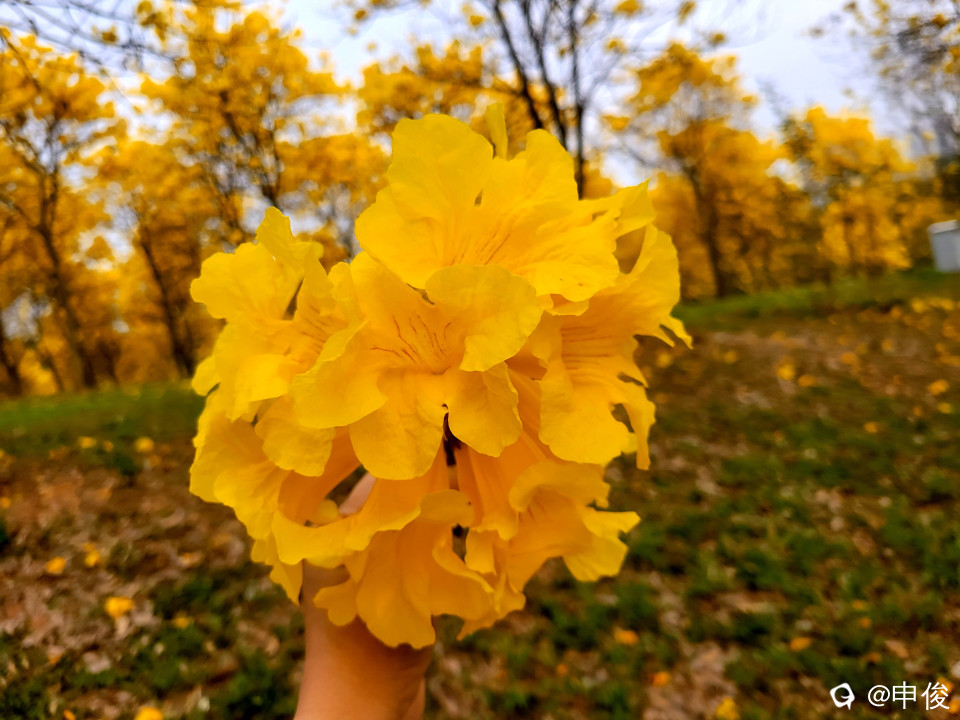 黄花风铃木的花语是感谢。因其随着四季更迭,展现不同的美景 ,好似以美景感谢世界。所以寓意感恩、知恩图报,以及对美好生活的希望与祝福。一树金黄一树香,风铃摇醒醉春光。