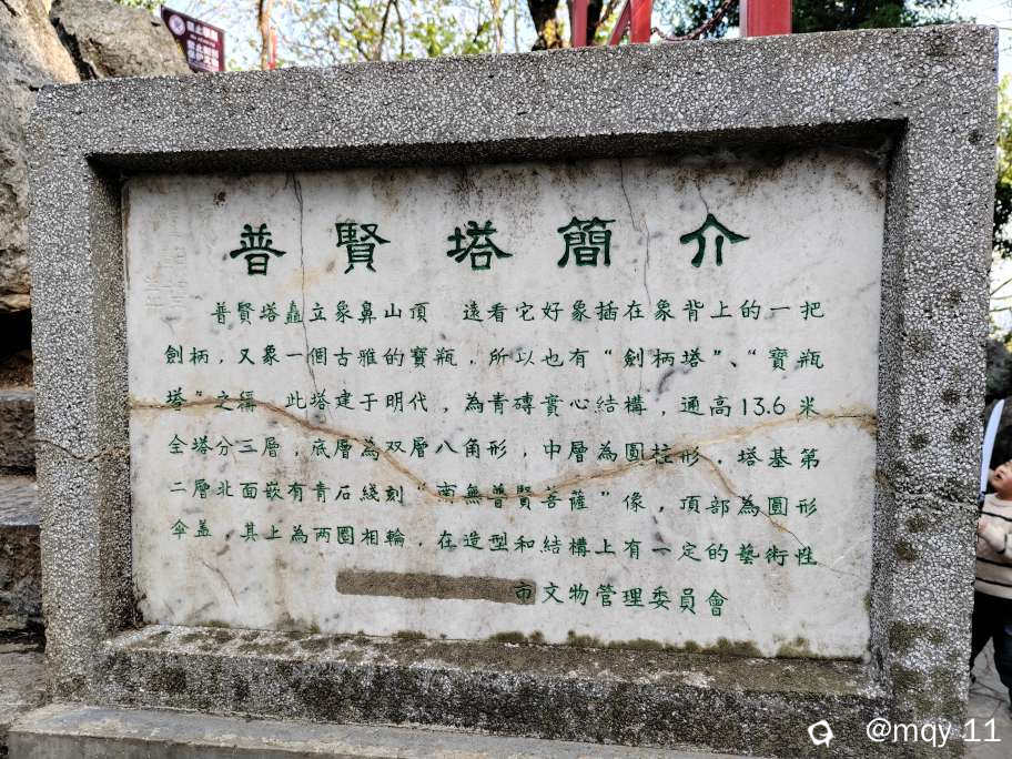 而猜疑, 在元朝,官府上下都十分崇奉喇嘛教的环境下,可能是某一任大官到任之后,看到象鼻山这座屏风,感觉风水问题,或者某种寓意问题,觉得象鼻山,就想到了普贤菩萨的形象,因为在传说信仰中,普贤菩萨就像坐着一头大象的。普贤菩萨坐着白象。