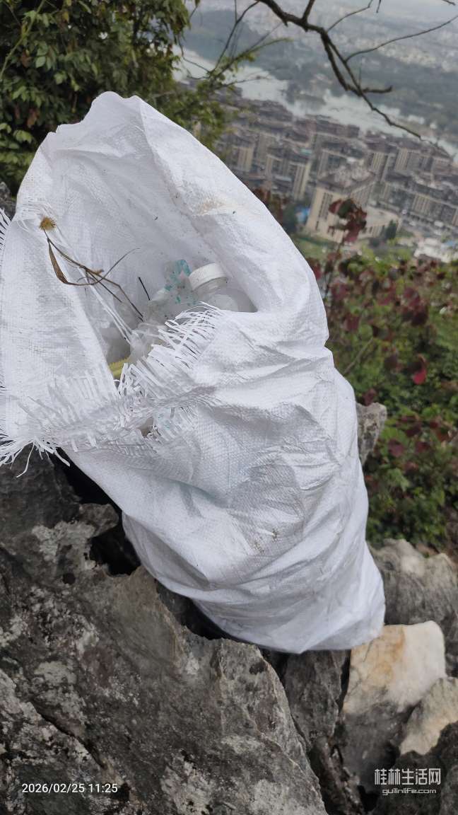 今天早起上去了穿山左峰顶的翻栏杆,捡了一袋。