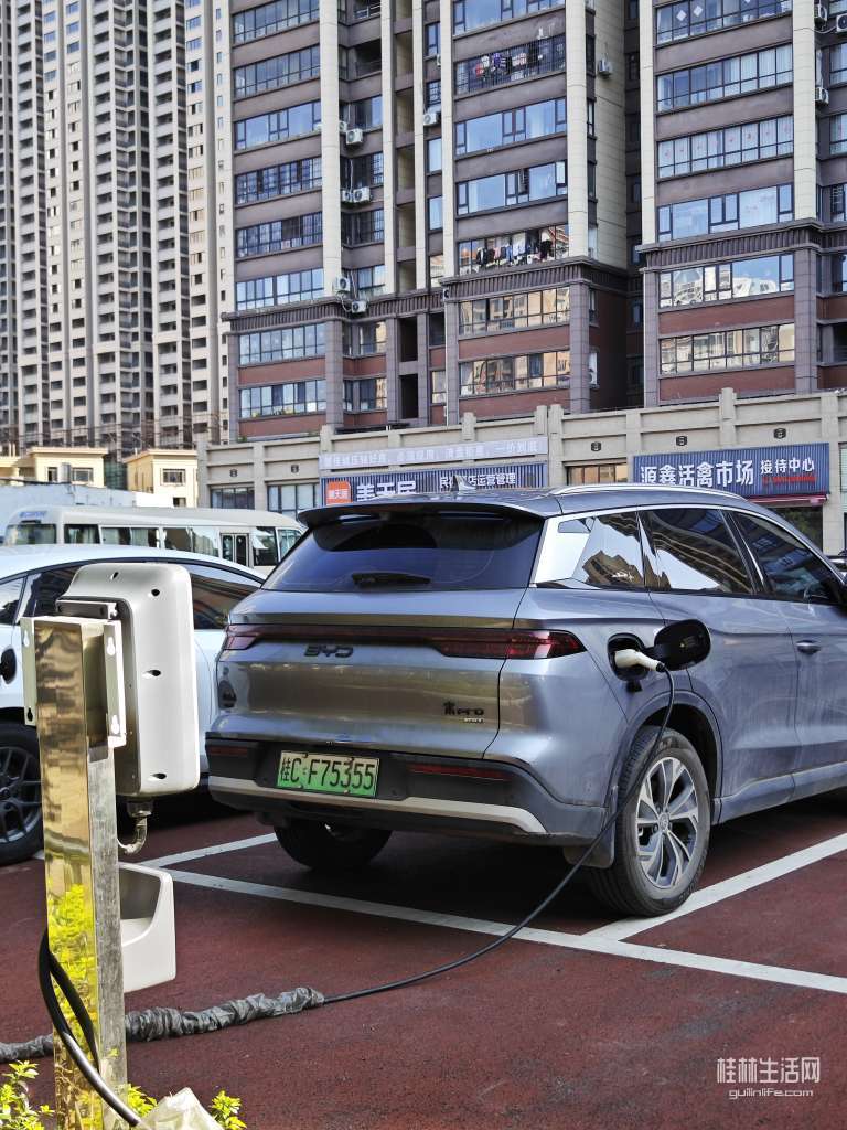 公共充电场满多车充电,价格实惠,看来电车车主有远见。