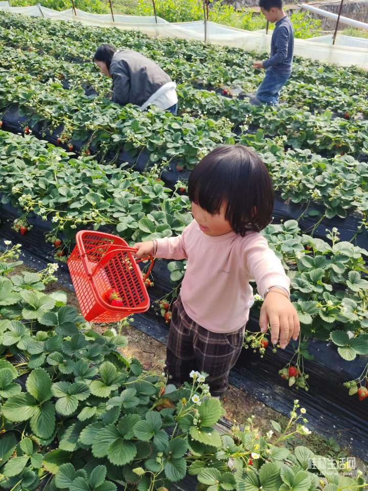 来亲戚家拜年,看到附近有个草莓园,和亲戚一起带小朋友过来摘草莓吃…