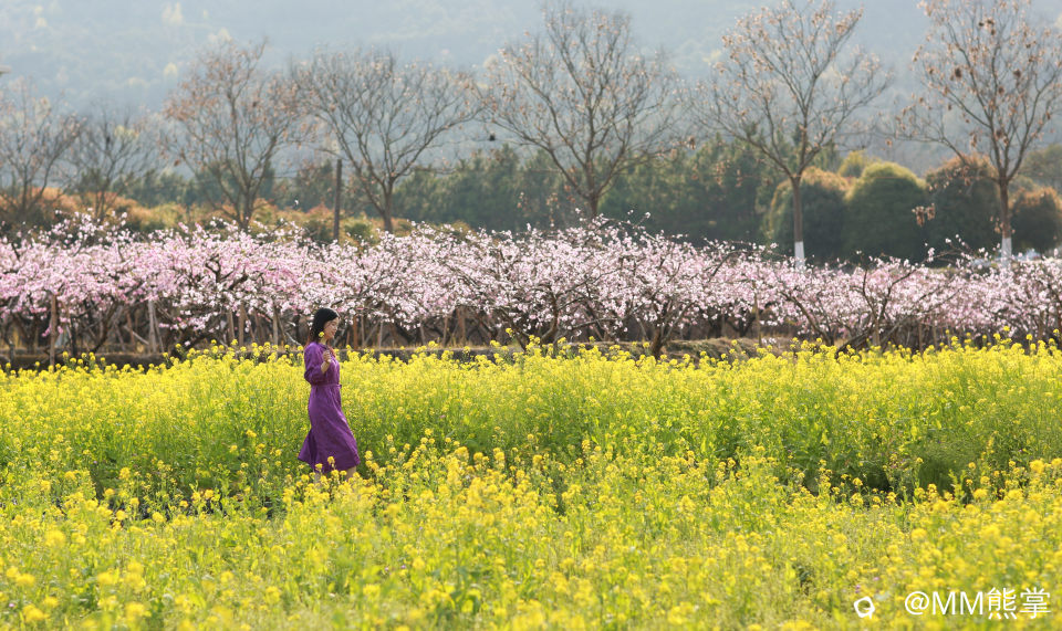 桃花开,高尚江村的桃花开了,恰巧我们来踏青。一片片粉红桃花,一块块黄色油菜花,在一座座蓝色背景山的映衬下,尤如一幅绝美画卷。我和妹子忍不住下车驻足拍照打卡,美呆了!