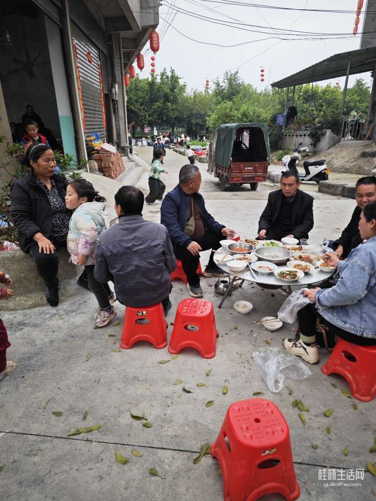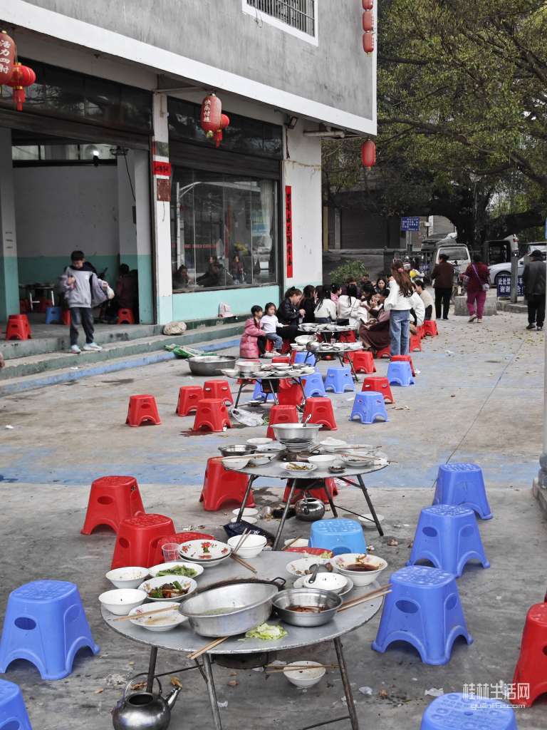 侗寨里有很多人吃席,热闹非凡。