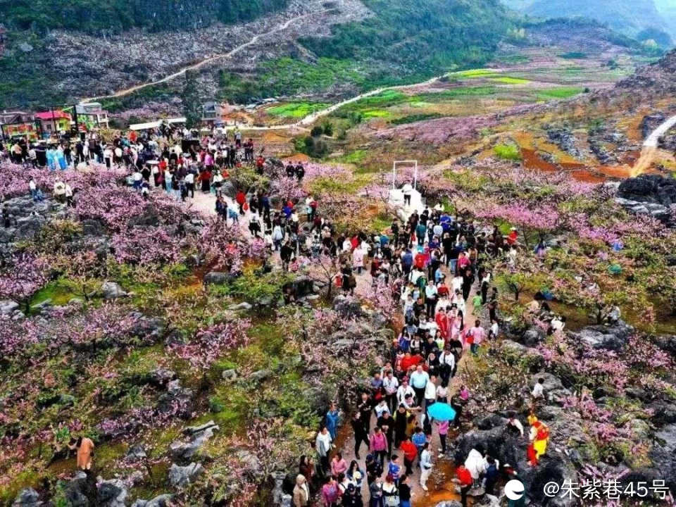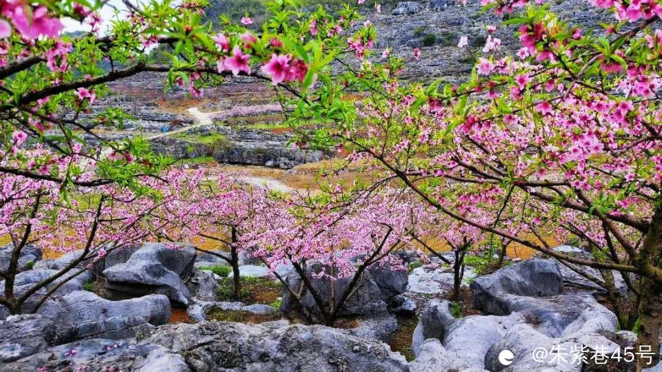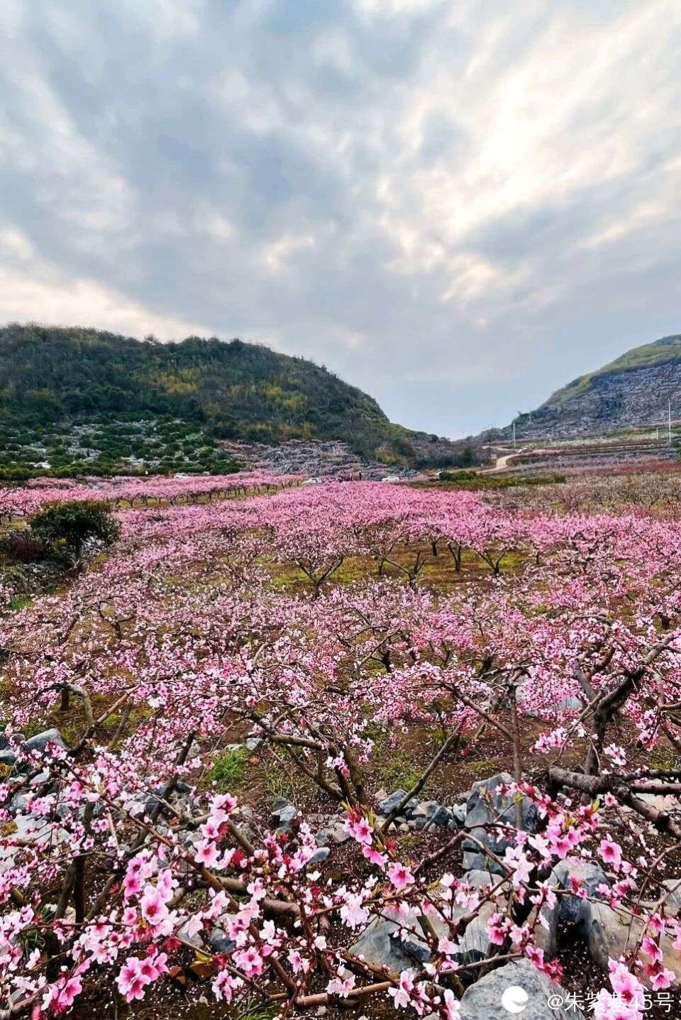 香花井村位于湘桂边界,四面环山,素来有“八分石山两分地”之说。近年来,村民撬石凿岩种桃树,如今面积达万余亩,成为了远近闻名的“桃花谷”。桃林依山势梯田式分布,延绵山谷,颇为壮阔,我们可以看片片桃花“绘出”春色