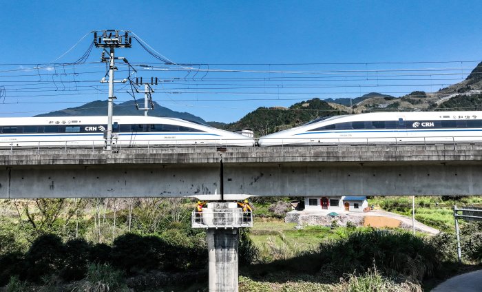 贵广高铁是途经桂林、连接贵阳和广州两个省会城市的重要铁路线。据了解,贵广高铁南宁局管区内共有桥梁285座(总长139.124公里)、隧道103座(总长209.436公里)、涵洞207个。为确保高铁动车顺利穿越这些桥隧涵,桂林高铁基础设施段桂林西高铁路桥车间的桥隧工人白天检查桥梁下部结构及周边山体,夜间利用“天窗时间”(即铁路运营中为线路维修、养护及施工预留的固定时段)开展栅栏内检查及维护作业。正是他们的辛勤付出,为高铁的安全运营筑起了一道坚不可摧的防线。