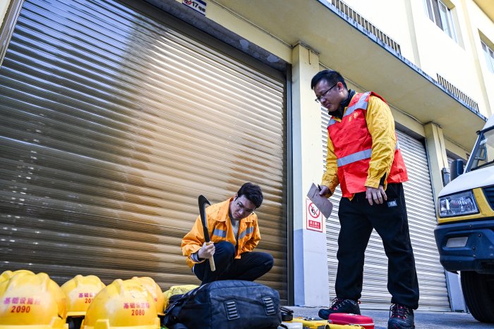 “这种防护网叫被动防护网,能拦截上方坠落物;针对不同山体情况,还有主动防护网,直接将隧道上方区域的山体牢牢包裹,防止危石坠落。”班长黄柏平介绍道。说话间,他与工友们手持检查锤,逐一排查防护网的牢固性,同时敲击岩石,查看是否有松动迹象。