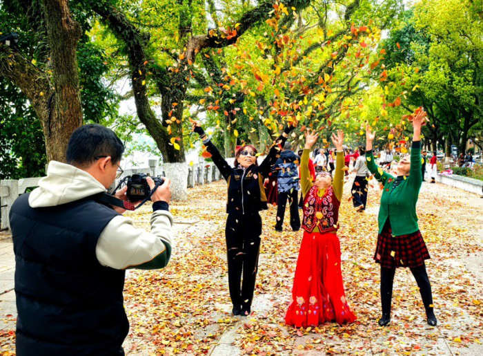 市民和游客对桂林这一“限定”美景更是赞不绝口。来自温州的涂女士说,第一次在春季看到这么美的落叶景观,“踩着落叶走在漓江边,一边是江水潺潺,一边是落叶纷飞,既有自然之美,又有人文韵味,桂林真的太有魅力了”。