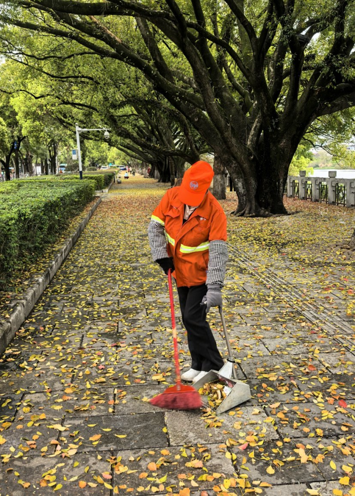 缓扫一地春叶 留住“限定”美景