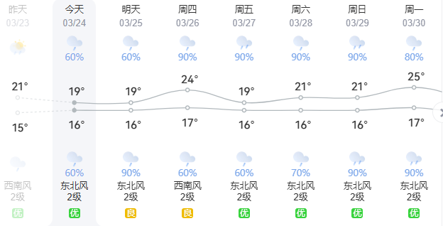 昨日 随着切变线和弱冷空气南下影响桂北 给桂林、柳州、河池等市 带来一波小到中雨、局地大雨或暴雨以外 桂林、柳州、河池、百色等市局地 还将遭遇 短时雷暴大风、冰雹等强对流天气 预计未来三天 广西各地气温将逐渐上升 从最高气温来看 除了偏北的地方 将逐渐从1字头升至2字头 其它地区升至30℃左右 到了26日 桂东北部分地区升至22~26℃ 其它地区将迎一大波30~33℃气温 初夏气息扑面而来 24日晚上到26日白天 随着切变线北抬减弱 桂北的雨势也将有所减弱 但仍有小雨、局地中雨 雨天路面湿滑、能见度不佳 外出尤其需要注意交通安全