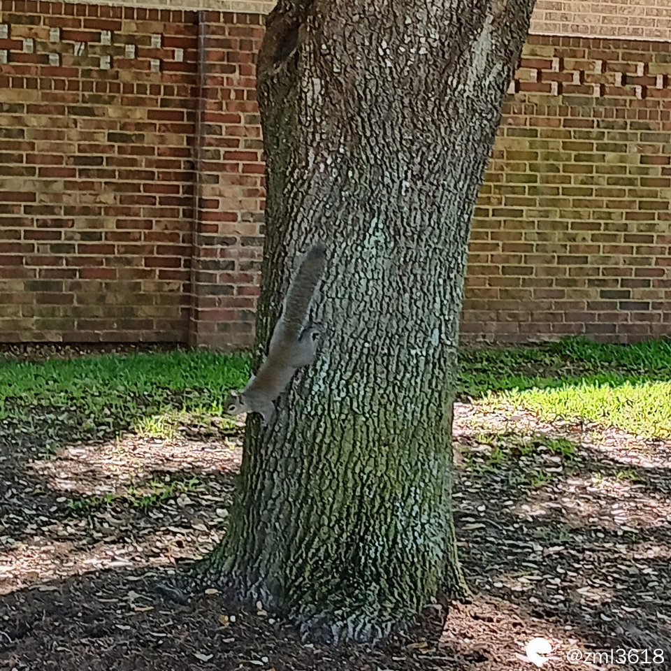 一路前行,骑到社区的长湖公园。 在公园路口,遇见活泼可爱的小松鼠。