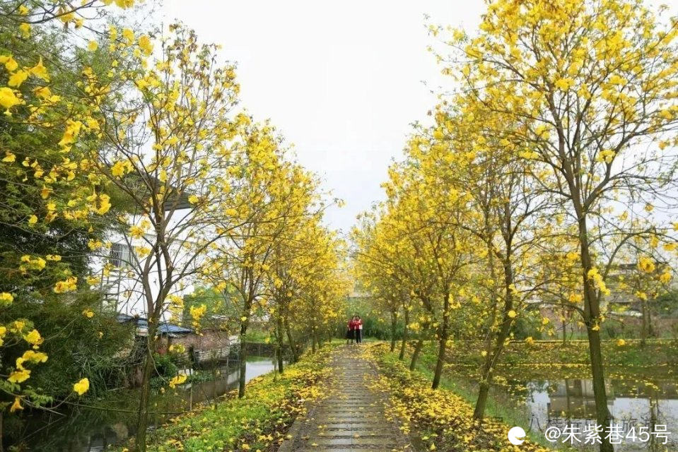 在会仙镇岭上村,一场金黄的盛宴正在上演。今年最佳赏花期3月25日至4月上旬,这里的黄花风铃木如期绽放,将整个村庄装点得如梦似幻。