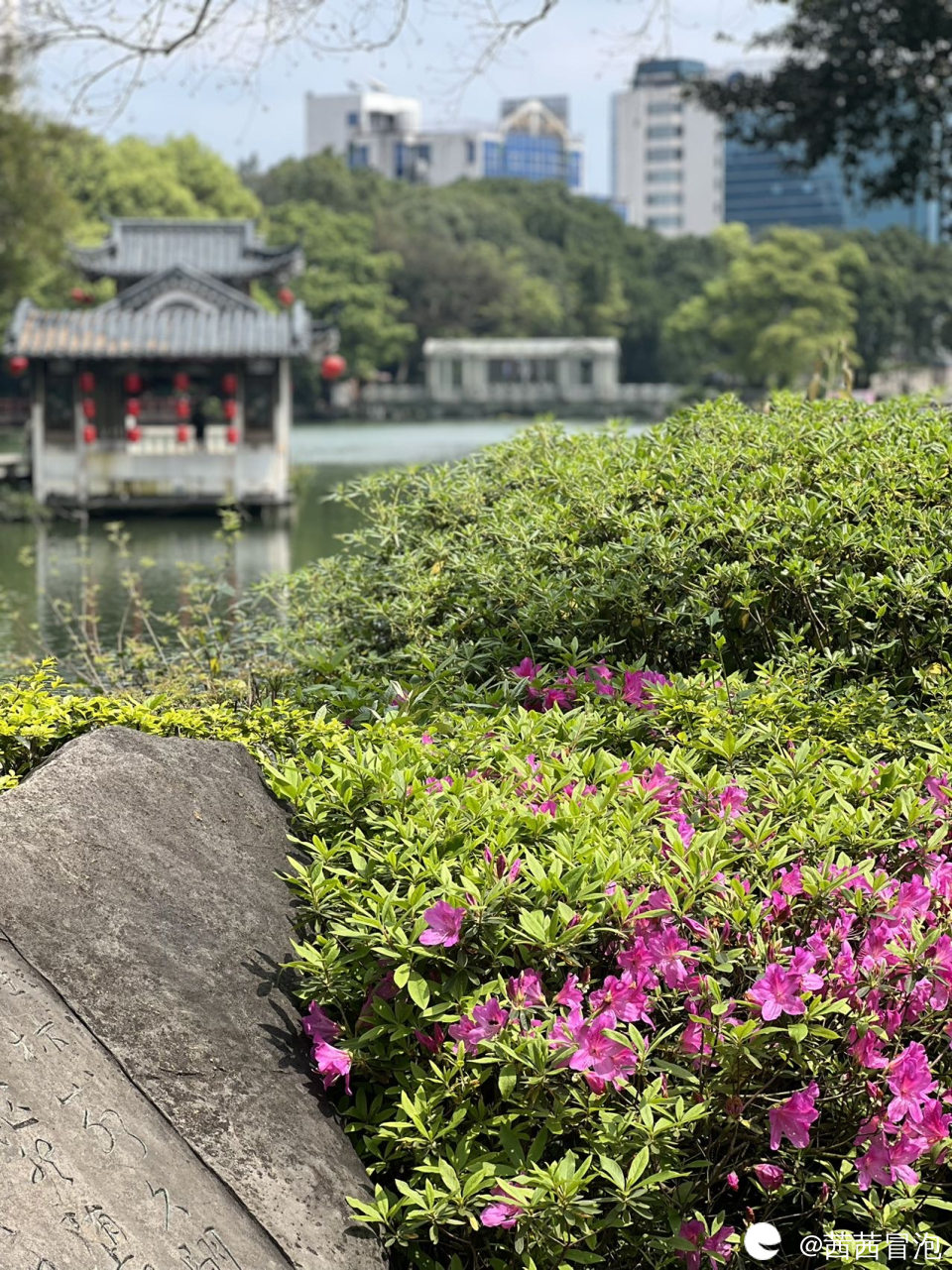 路过榕湖边,看到好多杜鹃花开了,好美啊!