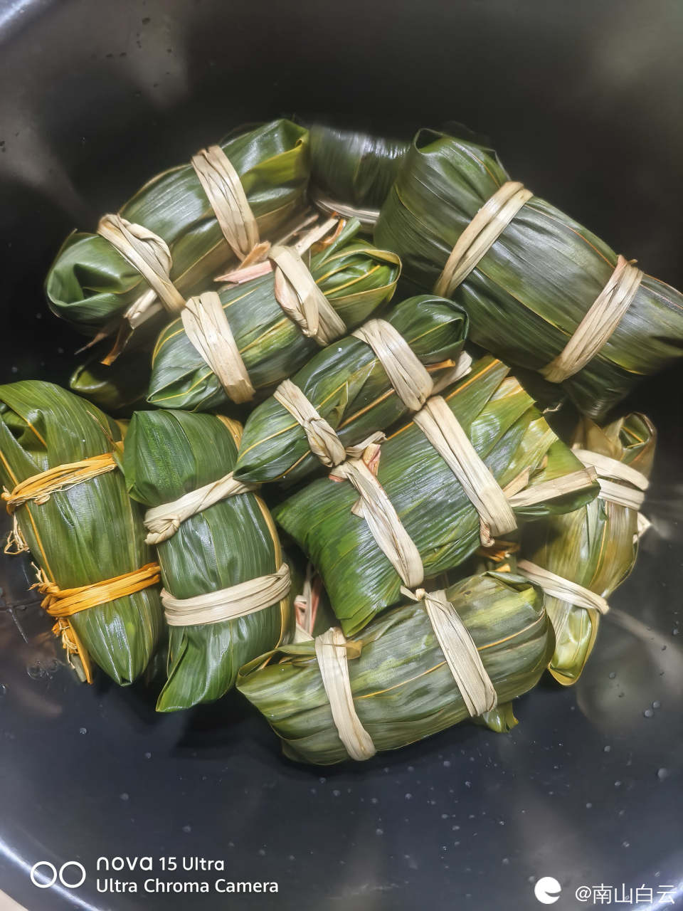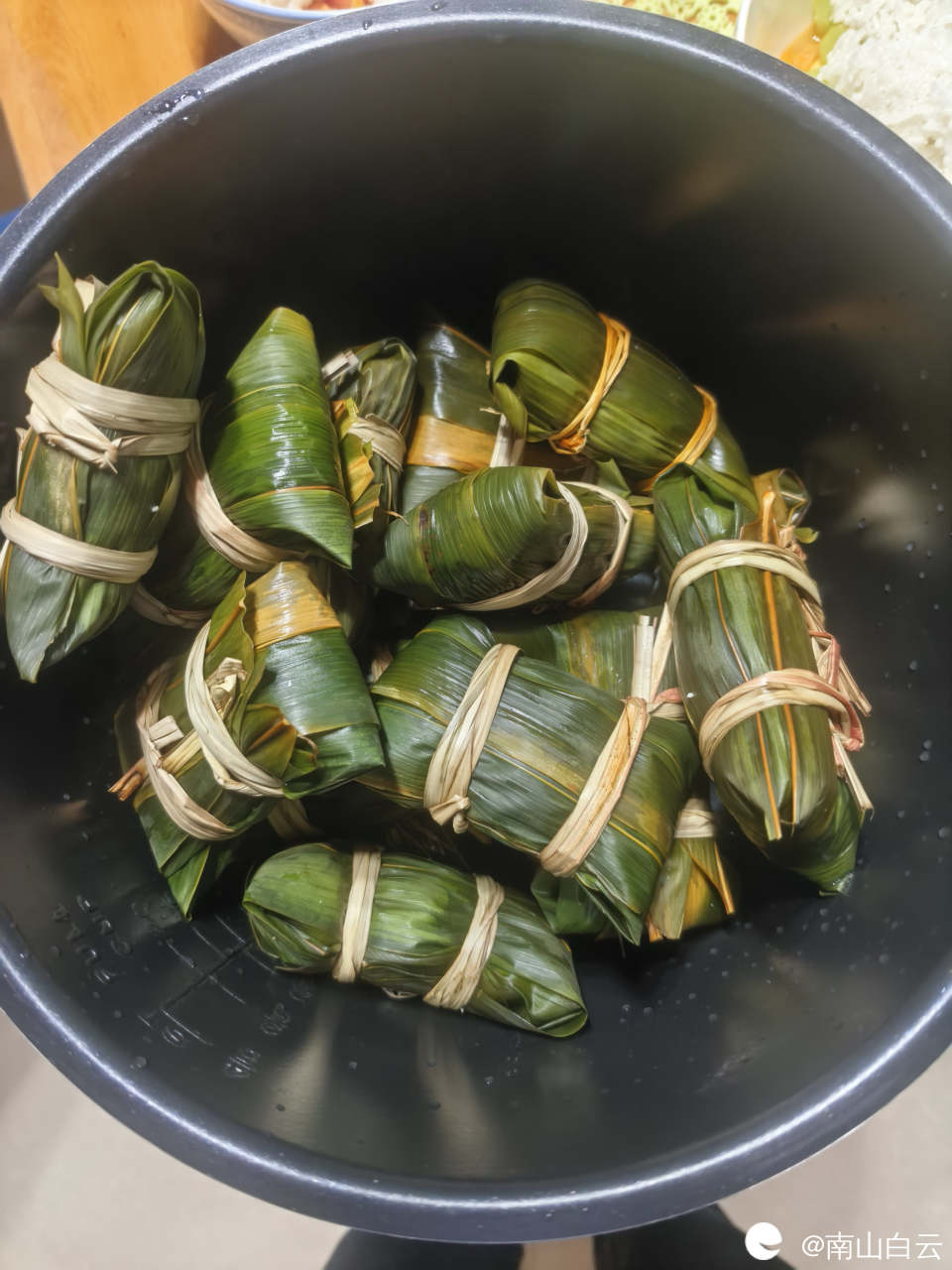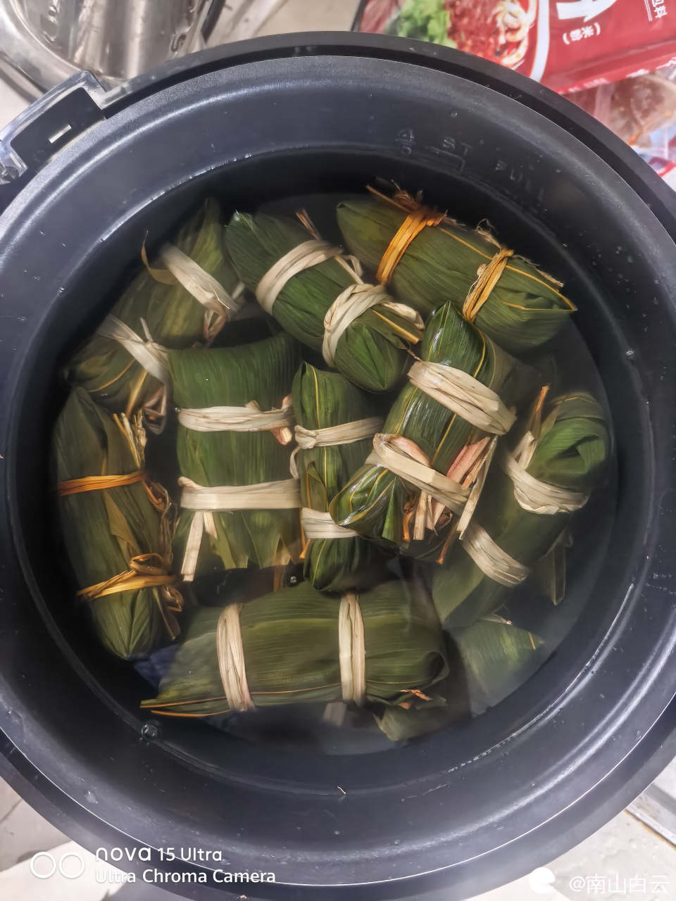 一会儿功夫,粽子包好了。放入高压锅炖。