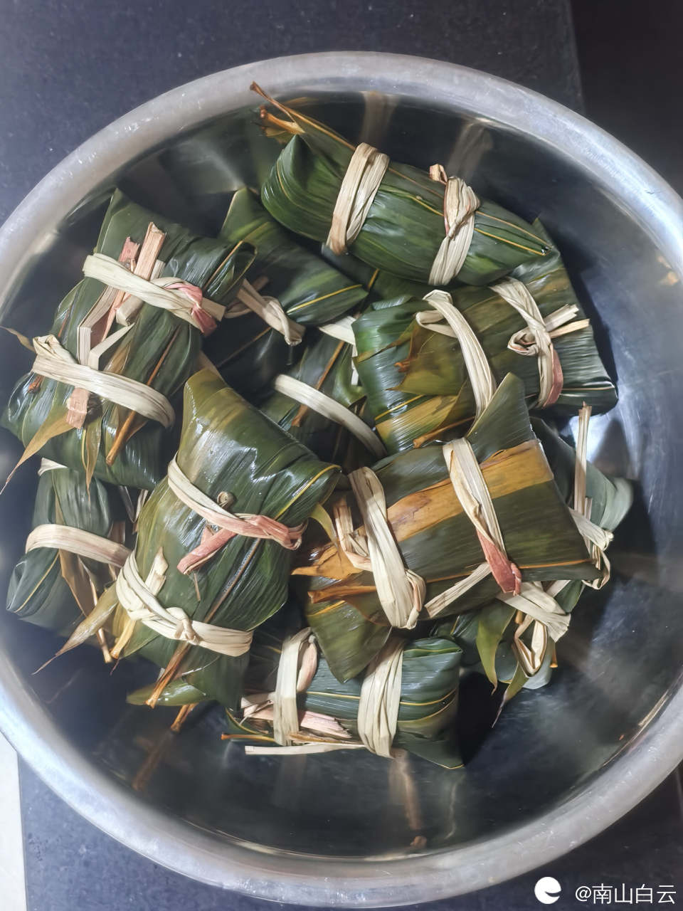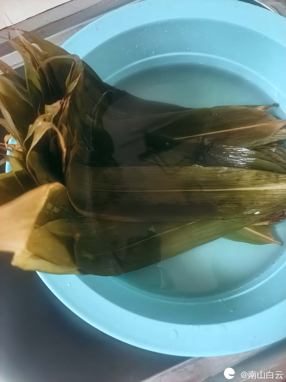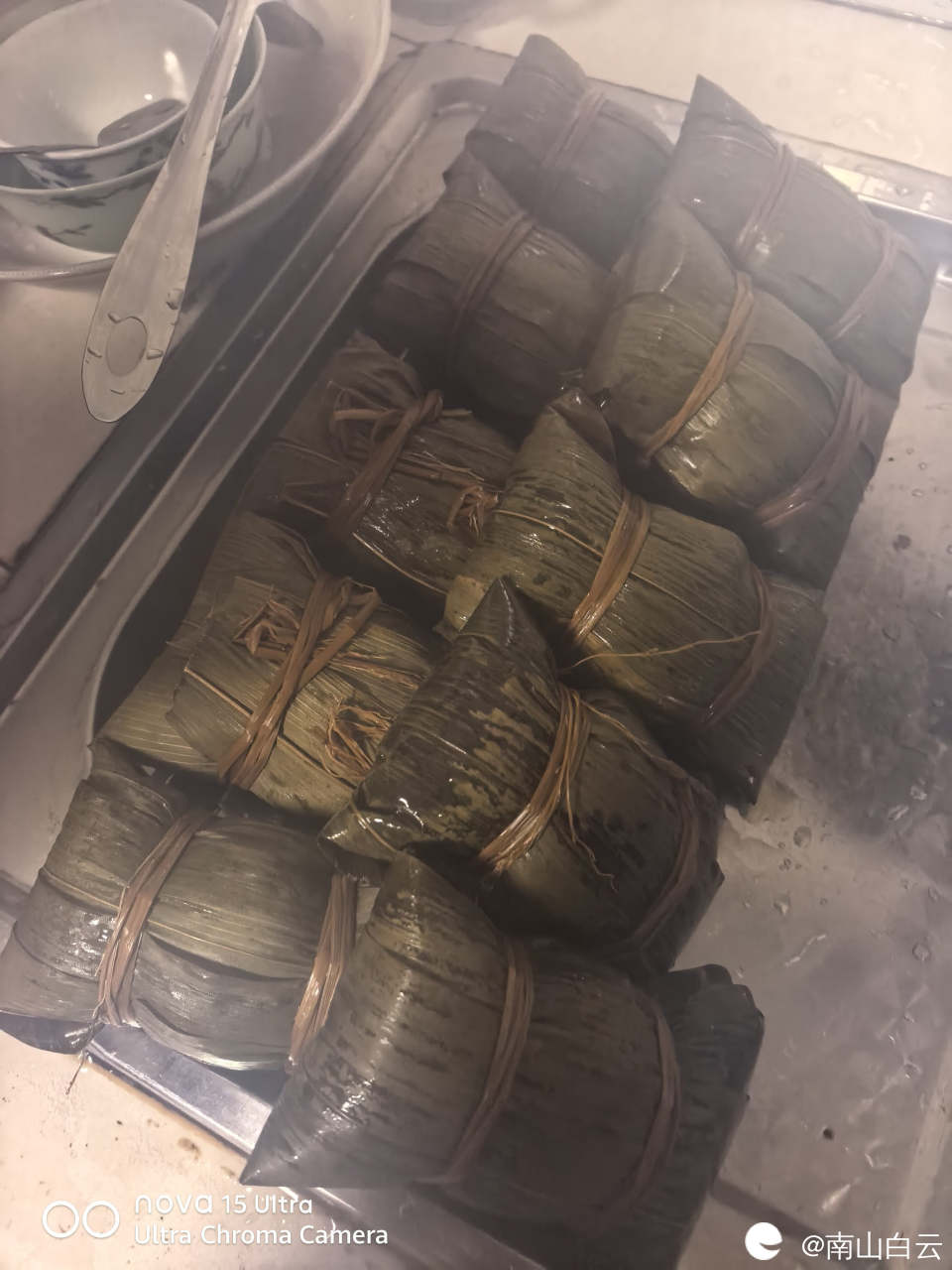 一会儿功夫,粽子包好了。放入高压锅炖。