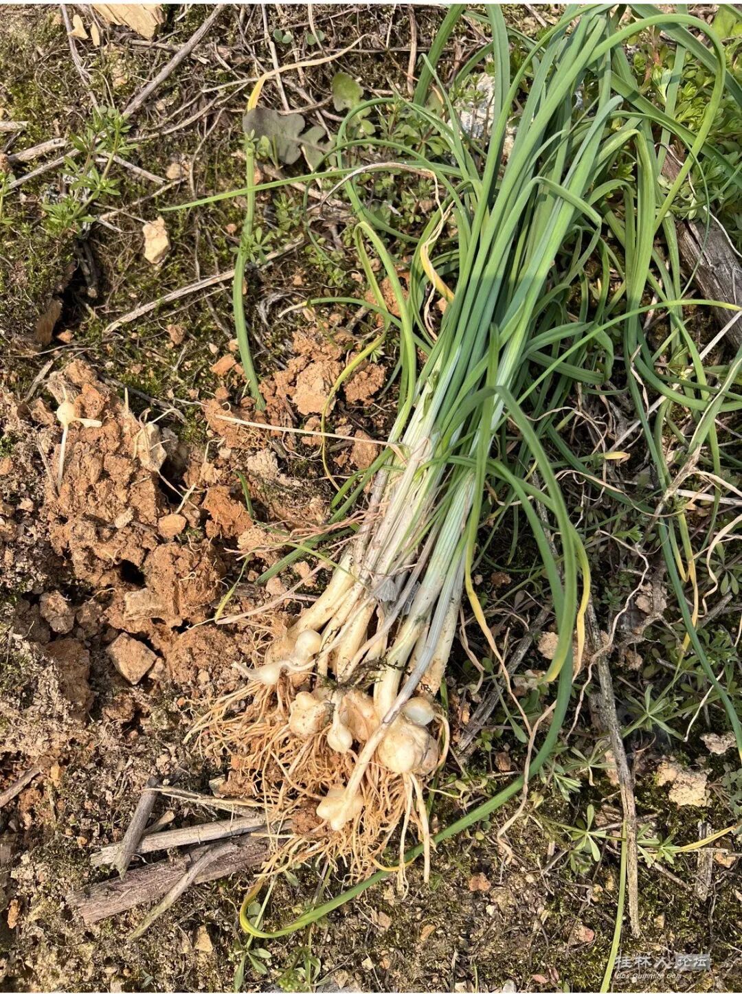 野葱,又叫野藠头,和种植的葱花相比,根部有一个白色的小“蒜头”,香味也更浓郁辛辣。