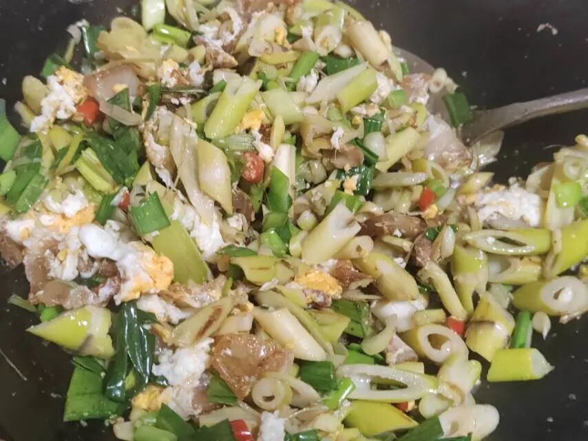 野葱可以用来炒肉、炒蛋、煎饼或者拌蘸水。搞一盘野葱炒蛋,味道美极了!