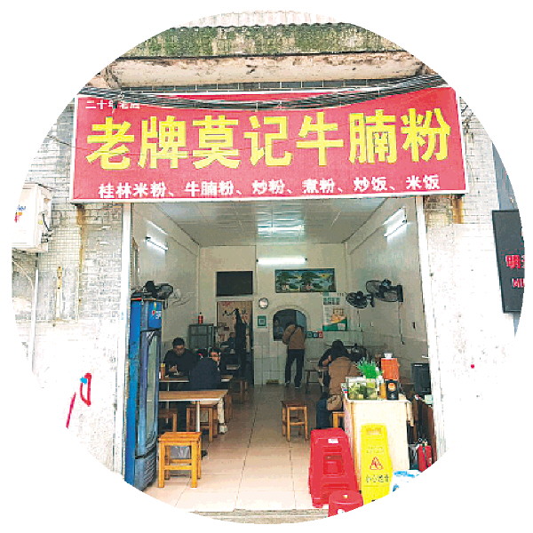 说实话,桂林米粉的味道基本上同化了,能开上几年不倒的,味道除非美食家能区别出0点几的区别.到处都有老牌名店,但谁吃米粉都是就近或顺道,莫记牛腩就是三元二两我也不可能从十字街跑到那吃.