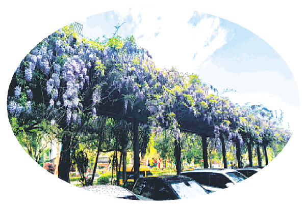 ▲临桂奥林匹克花园的紫藤花架车棚,是市区最浪漫的停车场之一。